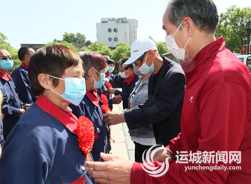 运城晚报讯(记者 祁克宁)5月1日,在市区人民公园前广场,公园举办了为工作人员佩戴大红花活动。