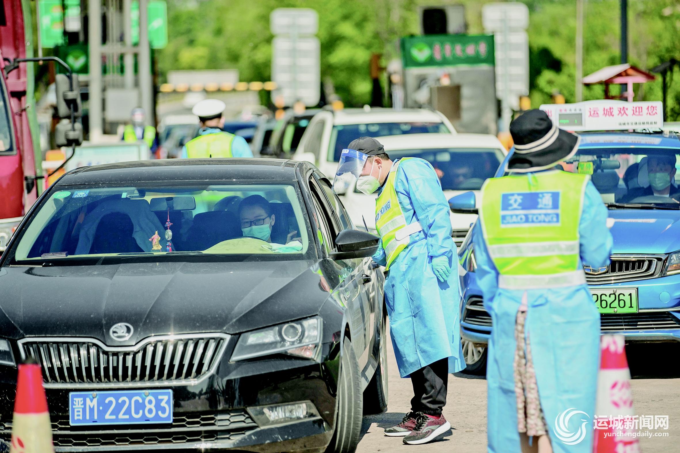 运城西高速口工作人员对通行车辆提前分流,有序引导车辆通行,切实做好疫情防控、保通保畅等工作。 运城日报记者 常 奇 摄