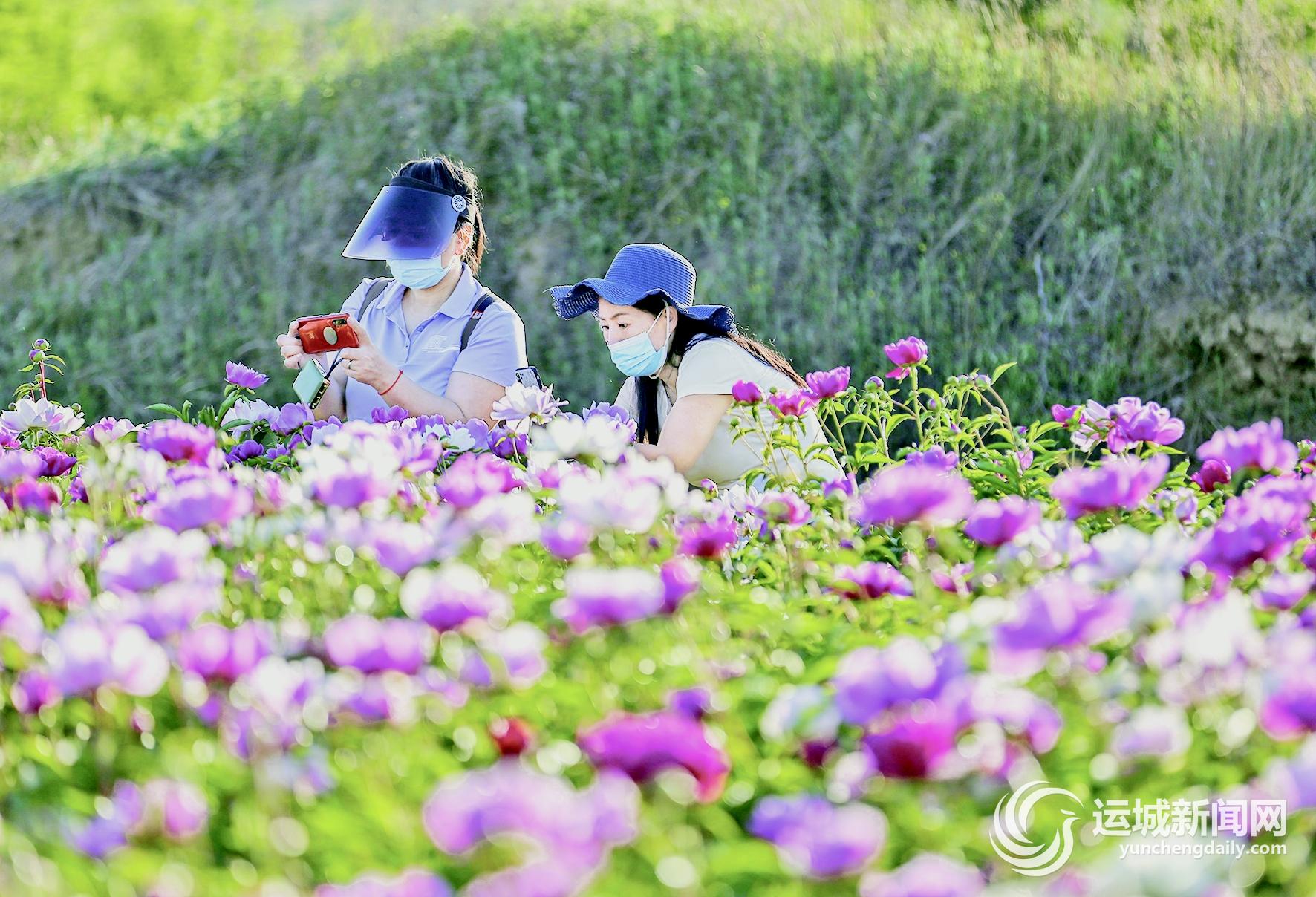 游客在平陆县张店镇陈张村的芍药田里赏花游玩。近年来,该村“两委”积极引导群众结合中药材种植,发展乡村旅游,增加农民收入。 运城日报记者 金玉敏 摄
