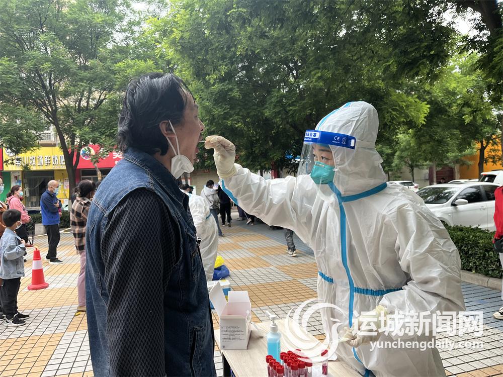 运城晚报讯(记者 李婷)“大家保持一米间距,打开晋快检,排队进场,不要着急。”4月30日早上6时30分,盐湖区北城街道禹香苑社区开展核酸检测,社区工作人员在维持现场秩序(上图)。