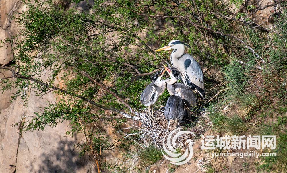 近日,在平陆县好汉坡黄河岸畔的悬崖峭壁上,数百只苍鹭在这里觅食、嬉戏、孵卵、哺育幼鸟,俨然一副生机勃勃的生态画卷。