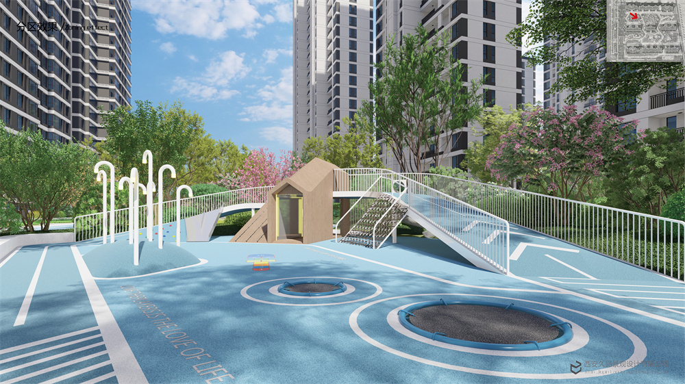 通过入门的寻光觅影到归趣遇林、汇享客厅、丛林乐园、山间林溪、乐活空间、休闲静憩7大功能,以游赏、社交、互动、健康等初心,去探寻关于生活的一切可能。一条400米的丛林树阵环形跑道、一处集诗意浪漫的艺术草坪和轻盈漂浮式会客廊架组成的多功能中央会客中心,用自然隔绝外界浮躁的心。