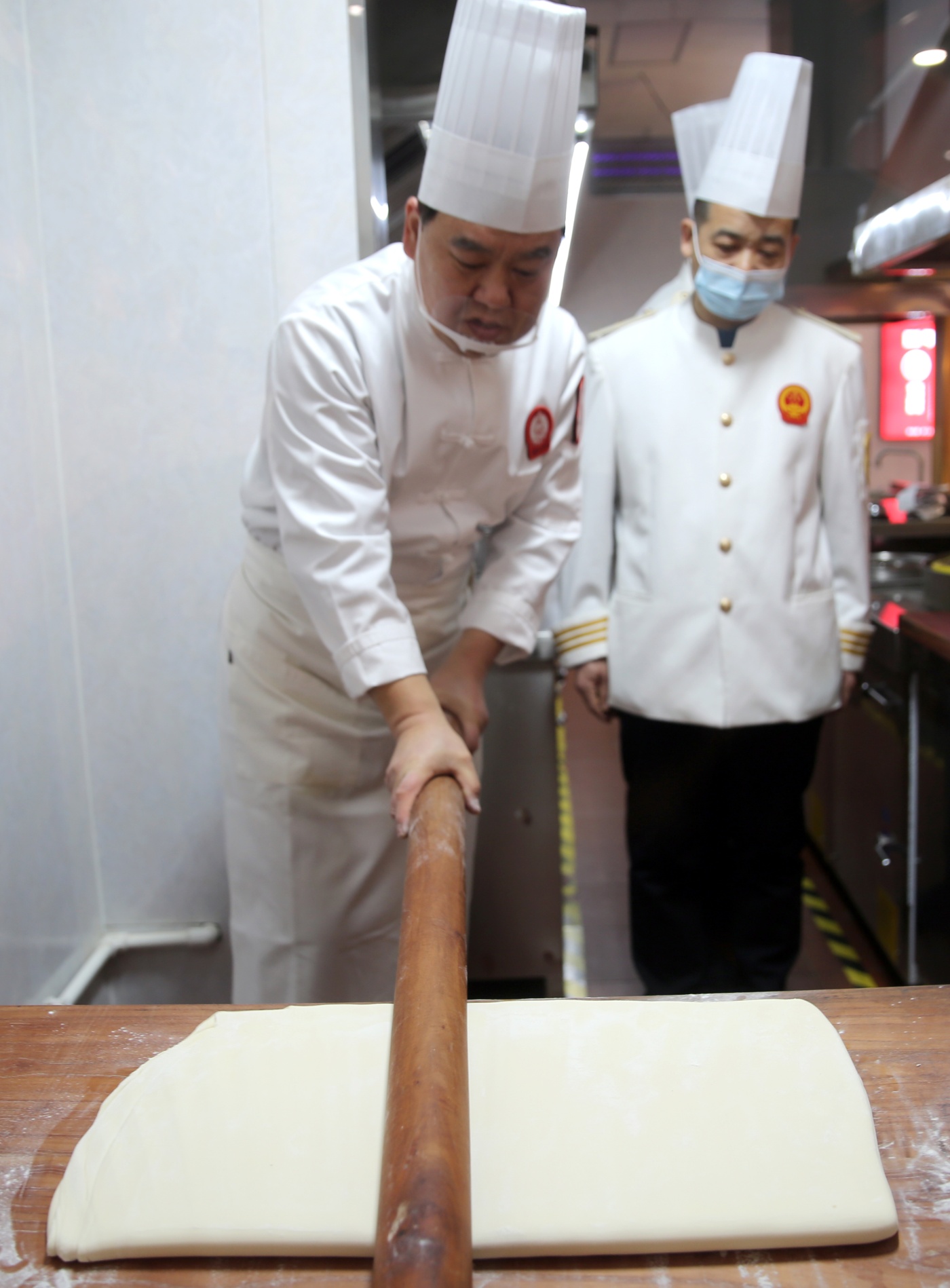 首先是和面、醒面。在和面时加入鸡蛋、精盐等,揉面与醒面交替进行,做到“三揉三醒”。