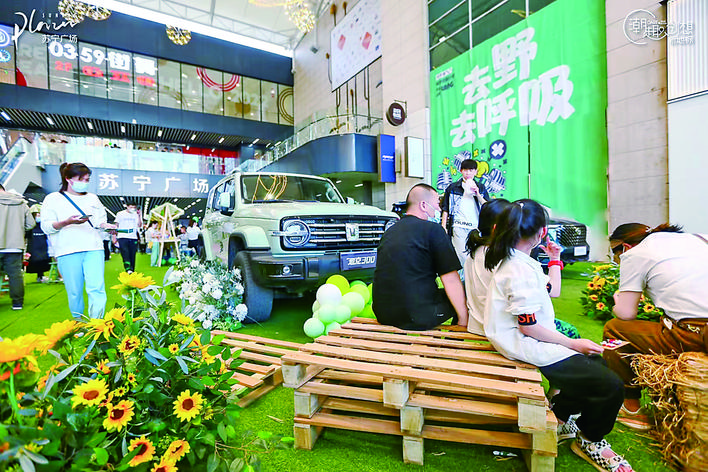 城市草地,露营正当时。该商场为广大消费者准备了帐篷、草地、酒馆等场景模式,人们在这里放松身心、畅享自由,寻得片刻欢娱。