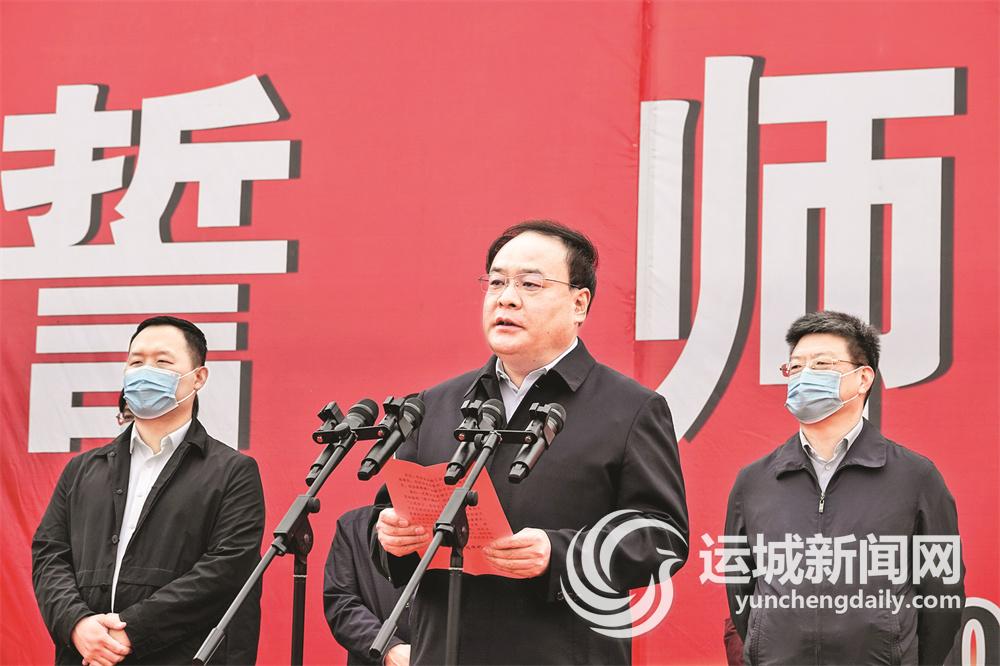 举行誓师大会,目的在于贯彻落实习近平总书记关于防汛救灾工作的重要指示精神,以及省、市相关会议精神,推动汾河防洪能力提升工程责任在一线压实、政策在一线实施、问题在一线发现、工作在一线推进,以大抓工程、抓大工程的强大攻势,坚决打赢汾河防洪能力提升工程建设攻坚战、总体战。