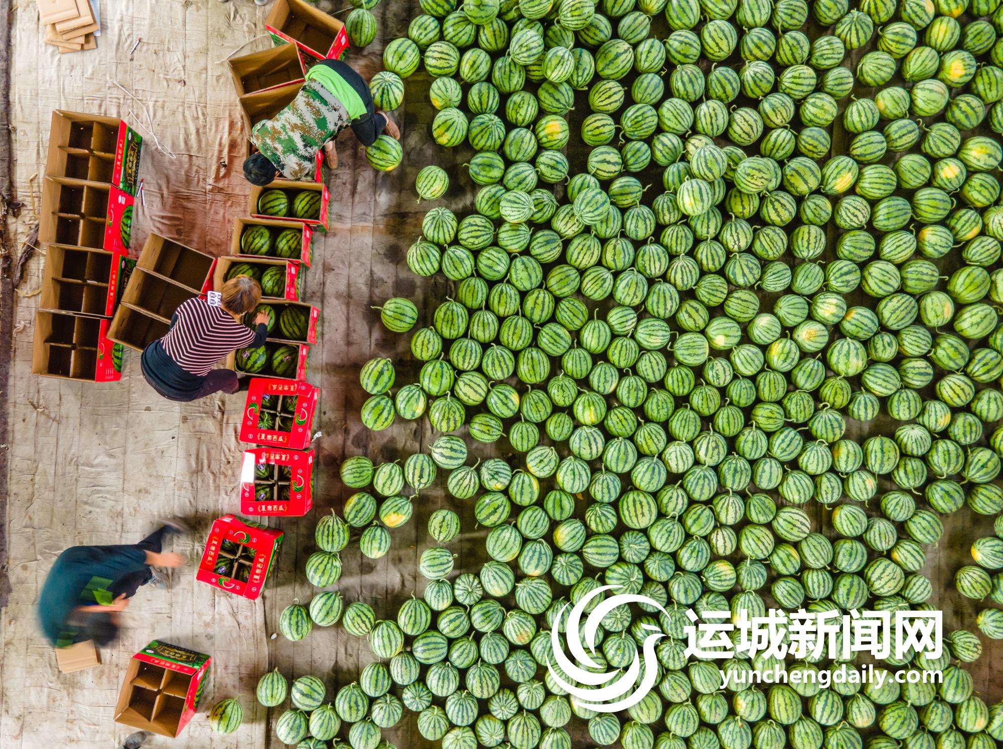 日前,头茬“夏乐”西瓜上市销售。5月10日,夏县古垛沟村瓜农在分装挑选好的“夏乐”西瓜。