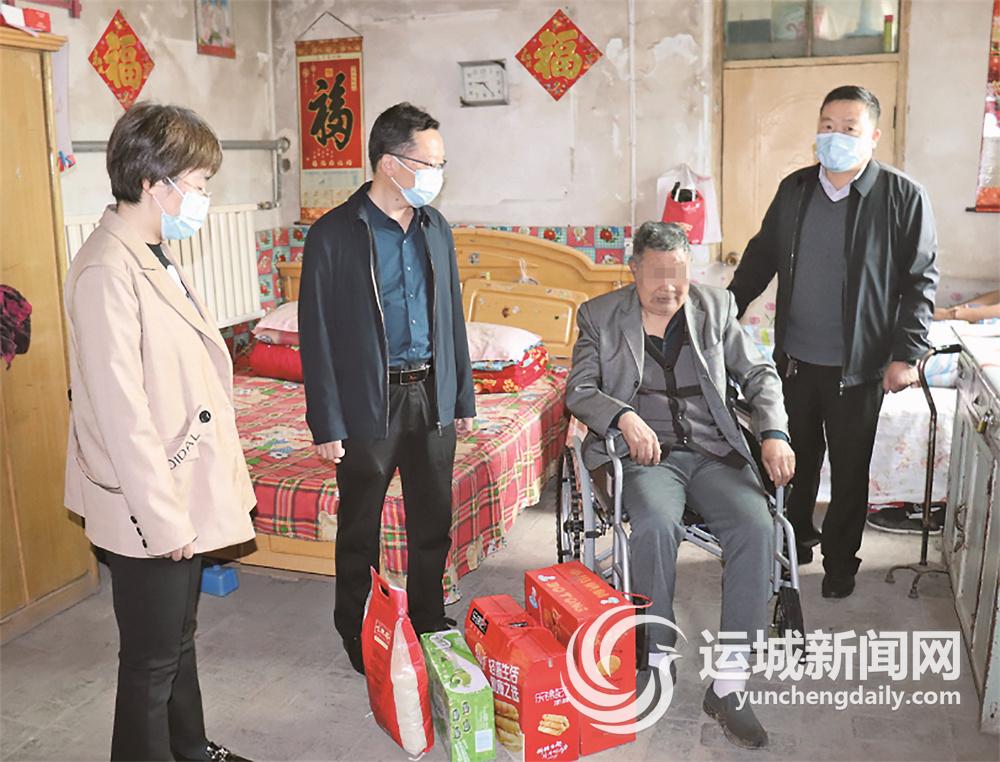 ▲闻喜县残联工作人员一行在该县畖底镇一名困难残疾人家中,为他发放辅助器具,送上慰问品。