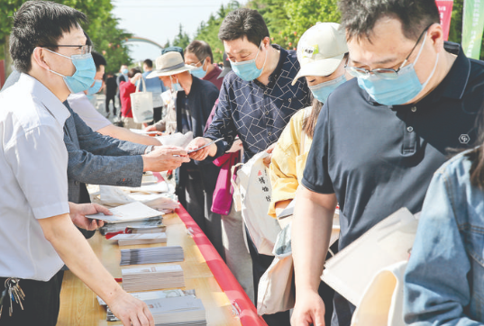 工作人员向游人发放宣传资料