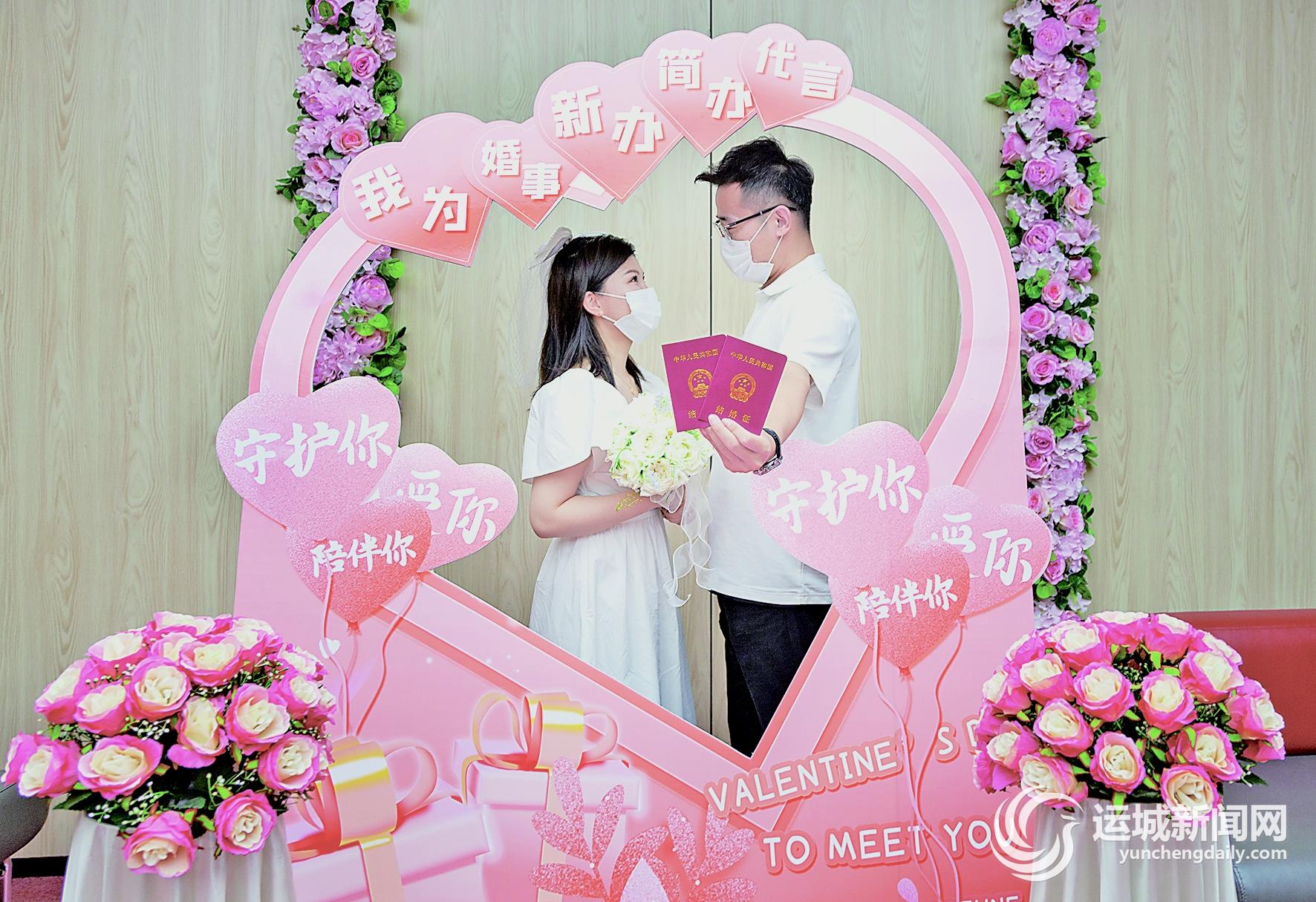 运城晚报讯(记者 陶登肖)“520”因谐音“我爱你”,成为许多追求仪式感的新人们理想的结婚日期。5月20日,盐湖区民政局婚姻登记处迎来登记结婚的高峰,当天共为216对新人办理了结婚登记。