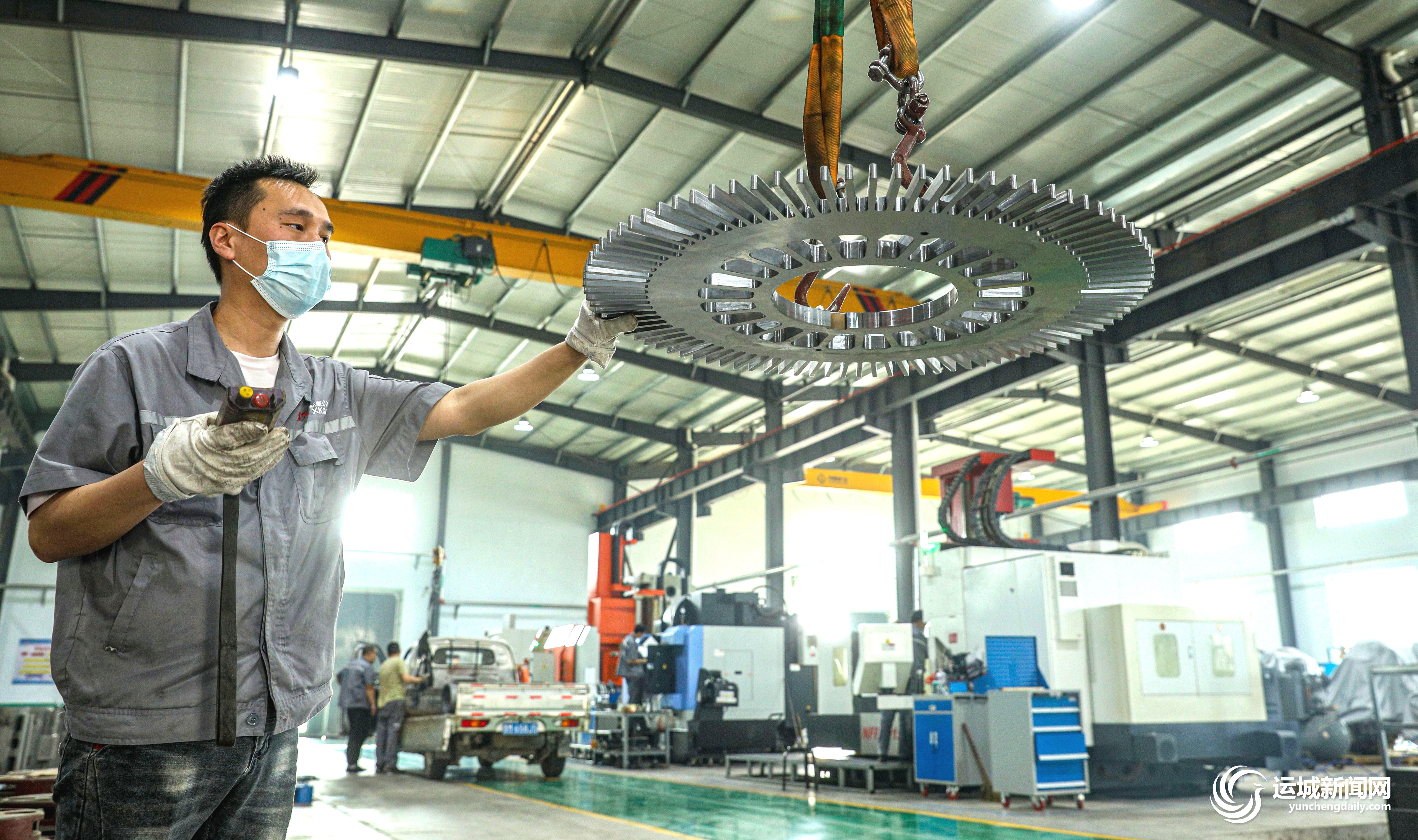 5月22日,永济市新康机械设备制造有限公司机械加工车间,工人在加紧生产。