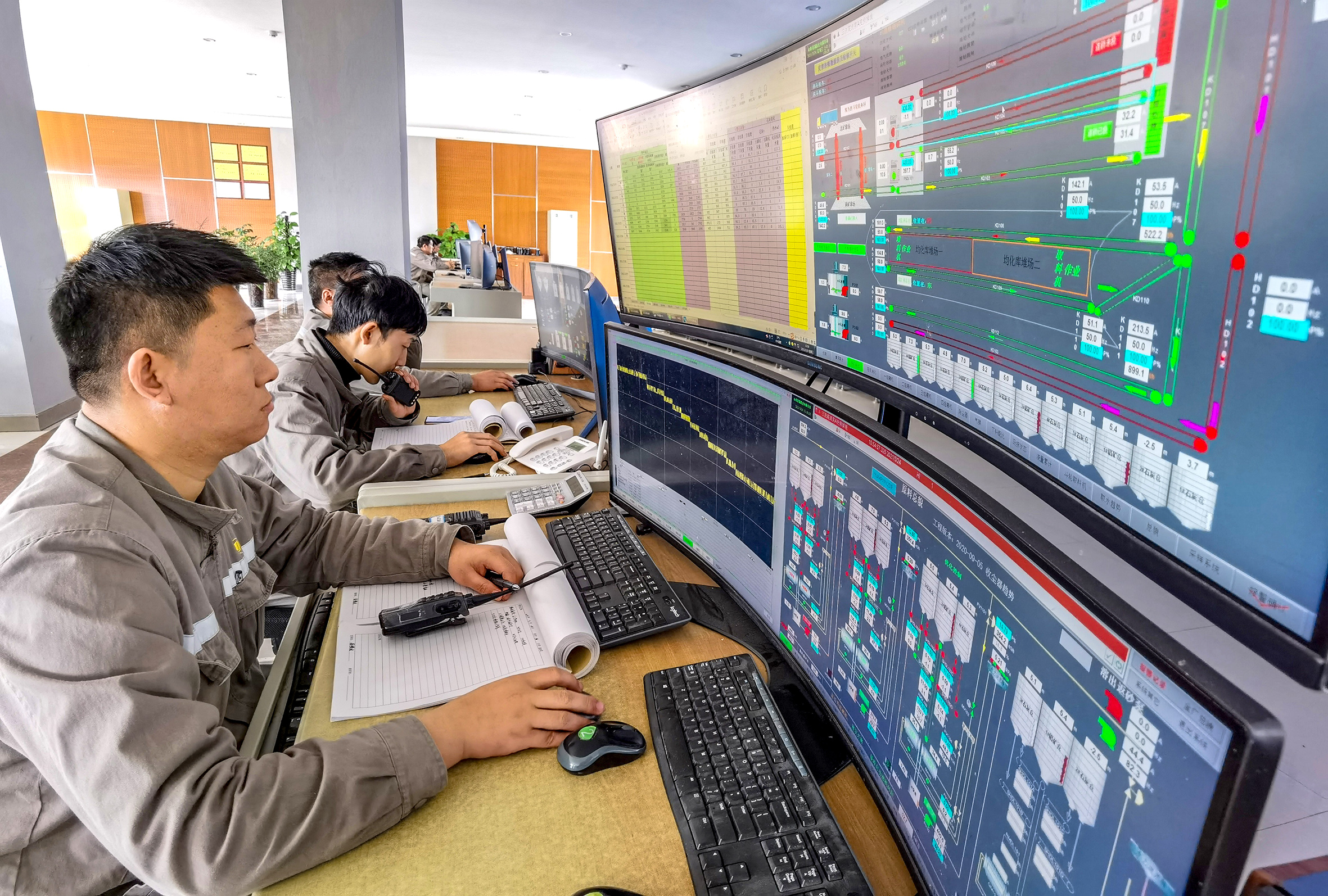 ③平陆复晟铝业有限公司中控室内,员工在实时观察各项生产数据。
