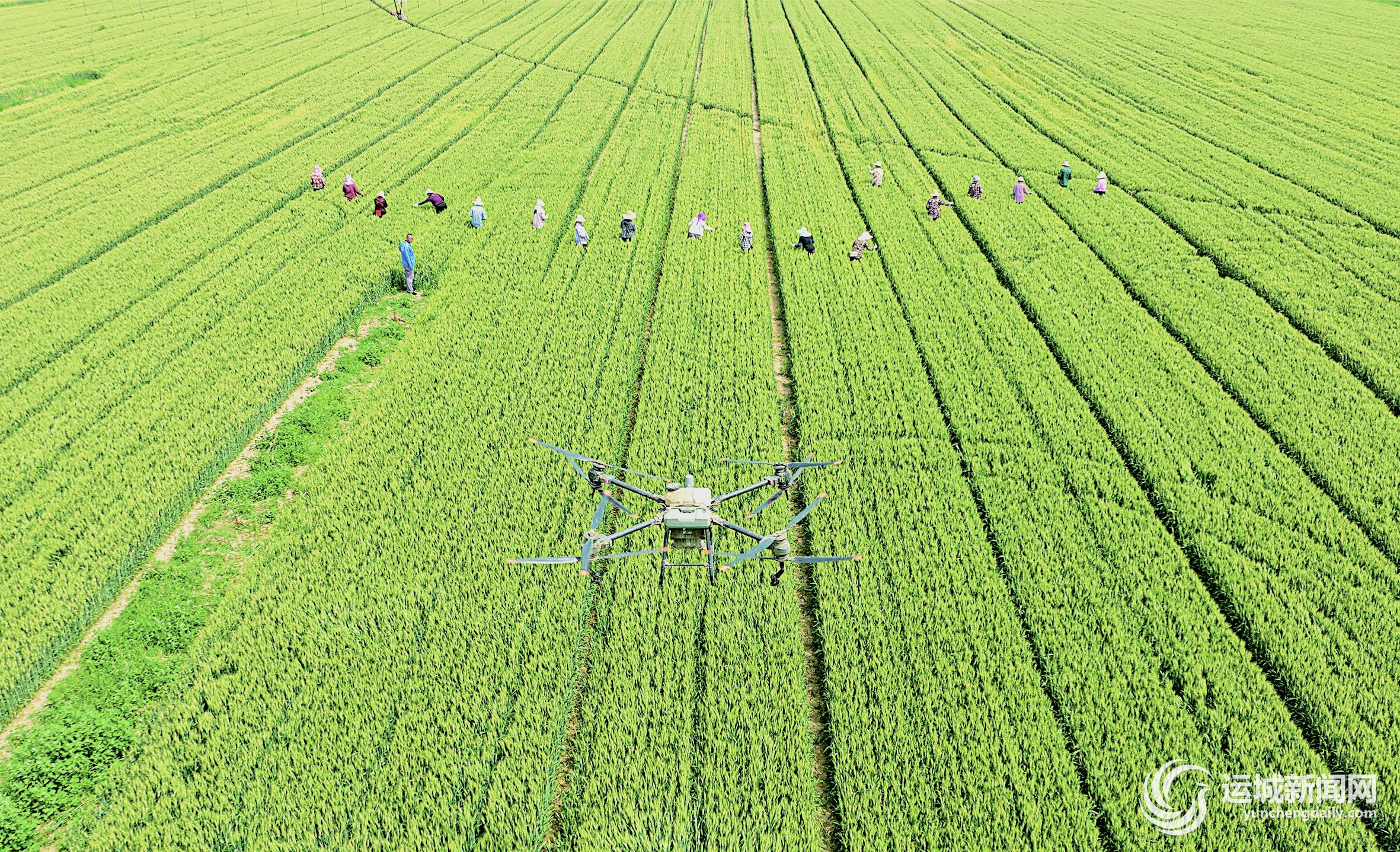 5月22日,永济市虞乡农场燕麦与小麦良种实验田里,农业技术人员深入田间,帮助麦农解决技术问题,指导麦农除杂麦,为夏粮丰收打好基础。 特约摄影 吕向前 摄