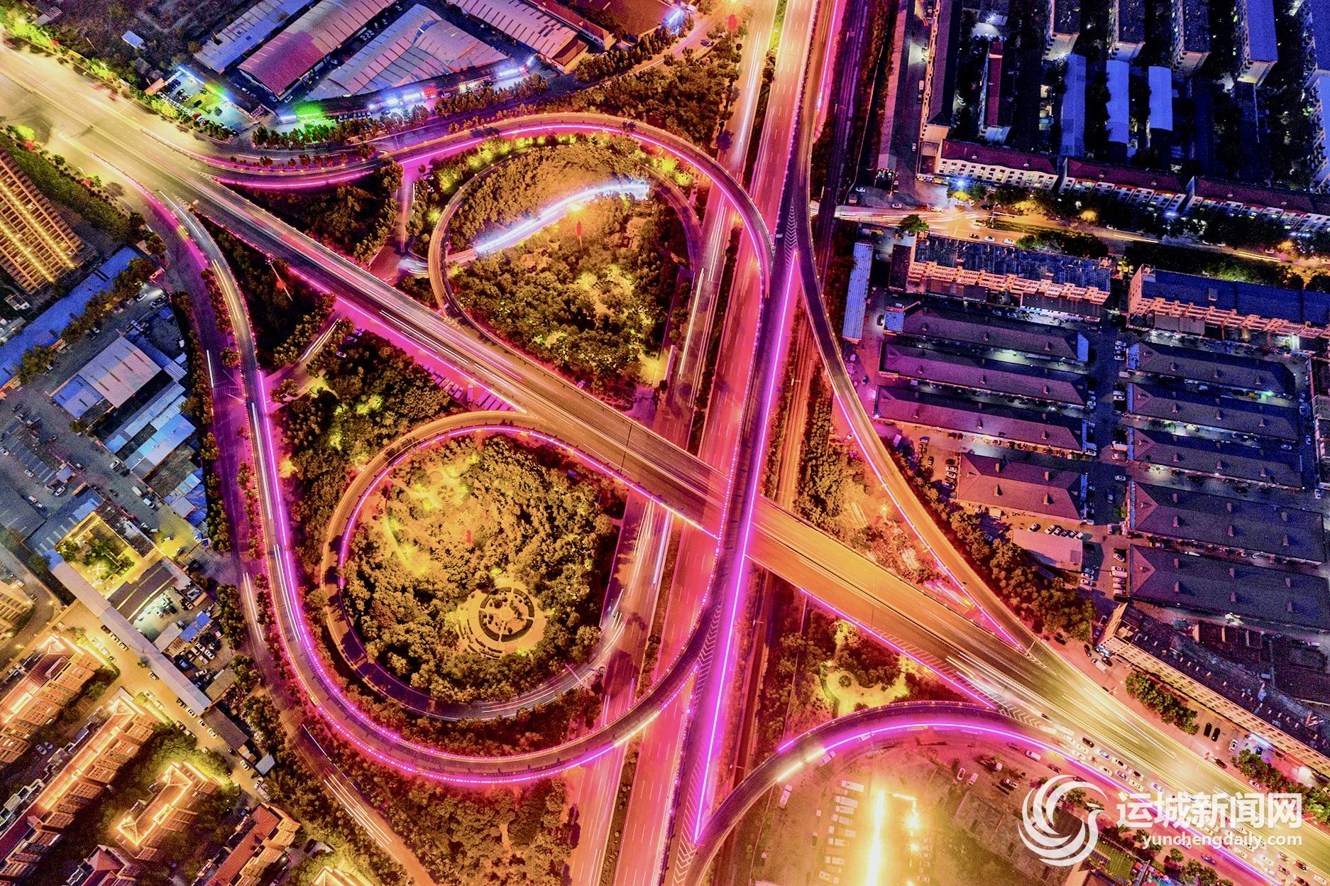 5月22日晚,中心城区学苑桥车流如织,在各色灯光的映衬下亮丽如画。