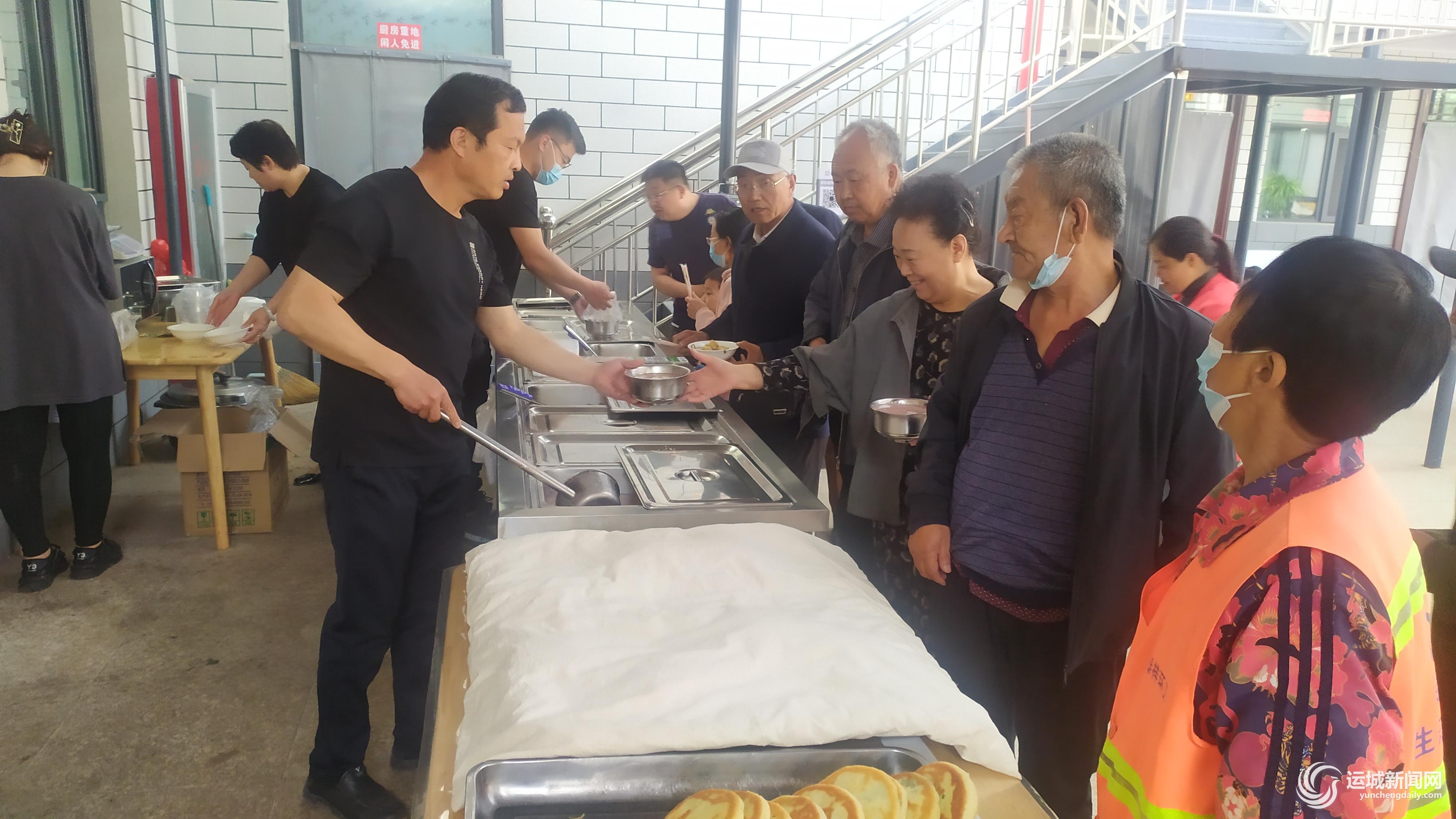 5月11日下午6时,新绛县顺城街社区居家养老服务中心内,一阵香喷喷的饭香味扑鼻而来,不少老人到这里排队打饭,有的在桌边坐下吃,有的打包带回家吃……