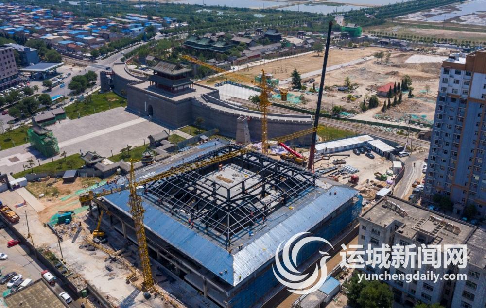 5月23日,运城市河东历史文化展示中心(河东名人馆)项目现场,工人们在抓紧施工。 河东名人馆位于市区中禁门北广场西侧,项目建设过程中坚持安全第一、质量为先的原则,合理推进施工进度。该馆建成后将与鼓楼、钟楼、盐池文化博览园等文化元素串珠成线,形成联动互补的集聚效应,助力我市文化产业高质量发展。记者 茹雅 摄