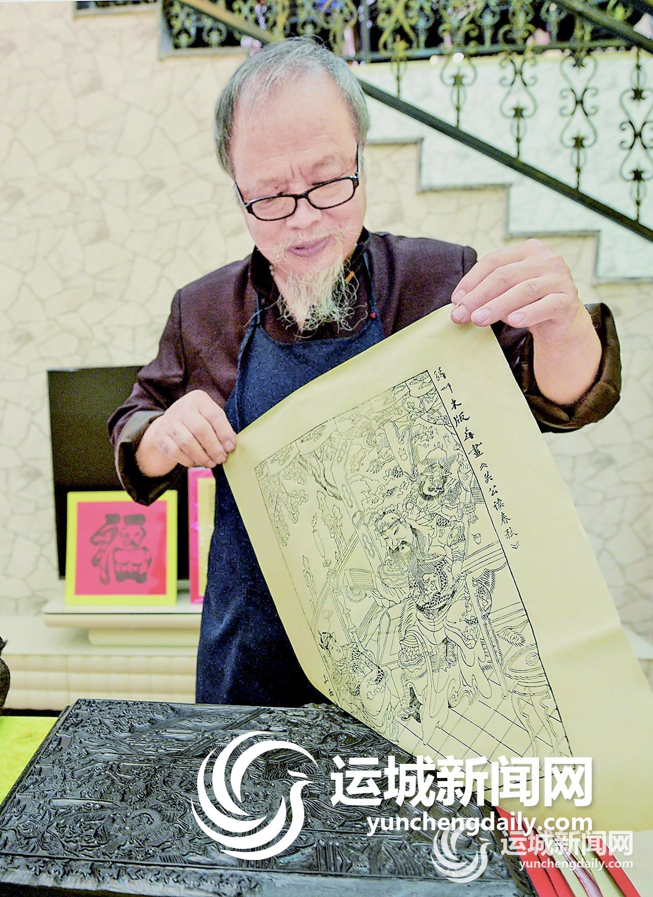上墨、喷水、趟纸……一张张木版年画带着墨汁味新鲜出炉,伏首案台的正是国家级非物质遗产保护项目绛州木版年画省级代表性传承人吴百锁。