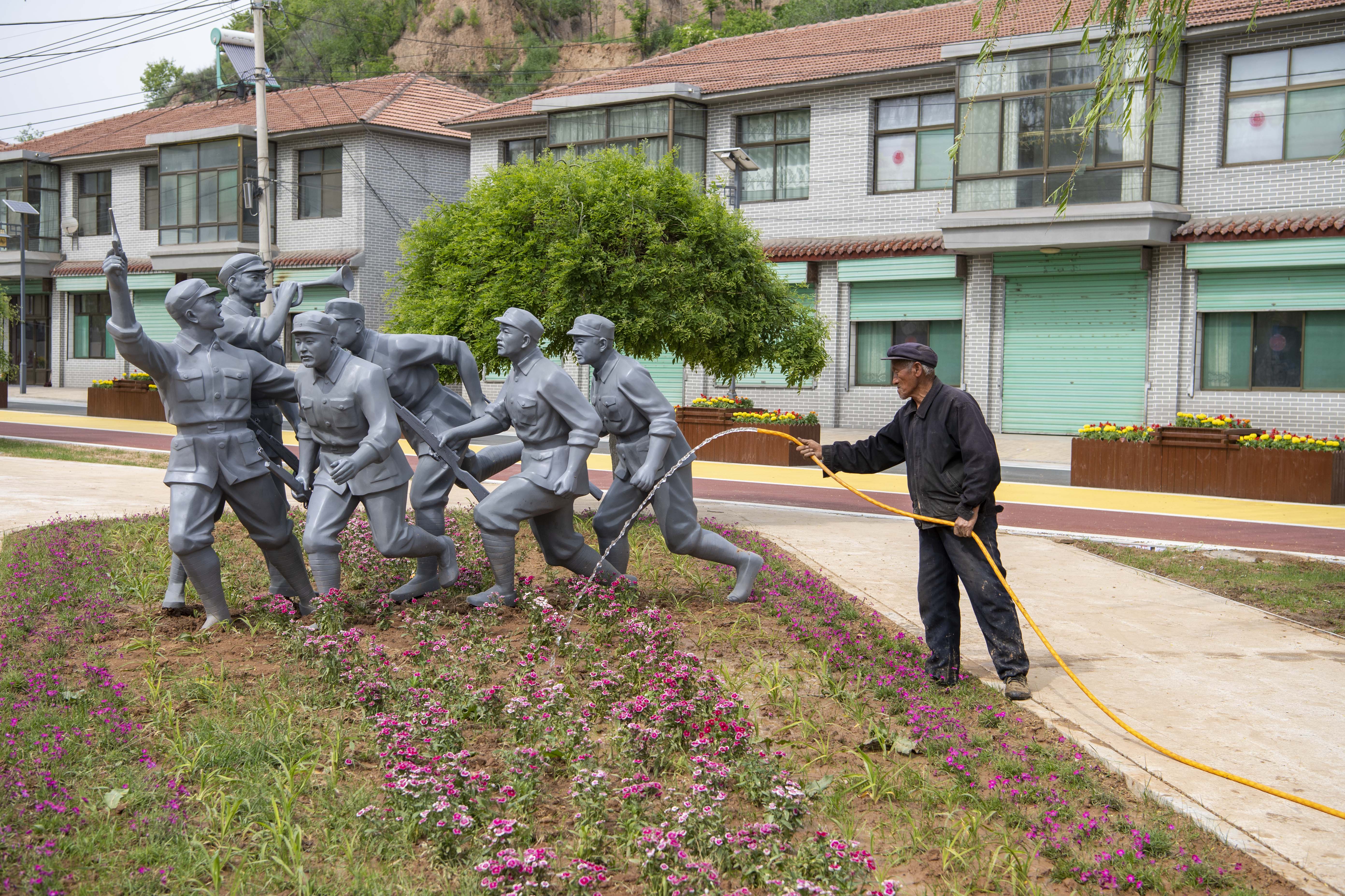 在距离砖壁村13公里的王家峪村,游客中心和宾馆已经落成,新修建的广场满眼绿植,路边工人师傅正在调试路灯和进行墙面美化。抗战时期,王家峪村曾是八路军总司令部和中共中央北方局所在地,多年来人们慕名而来。