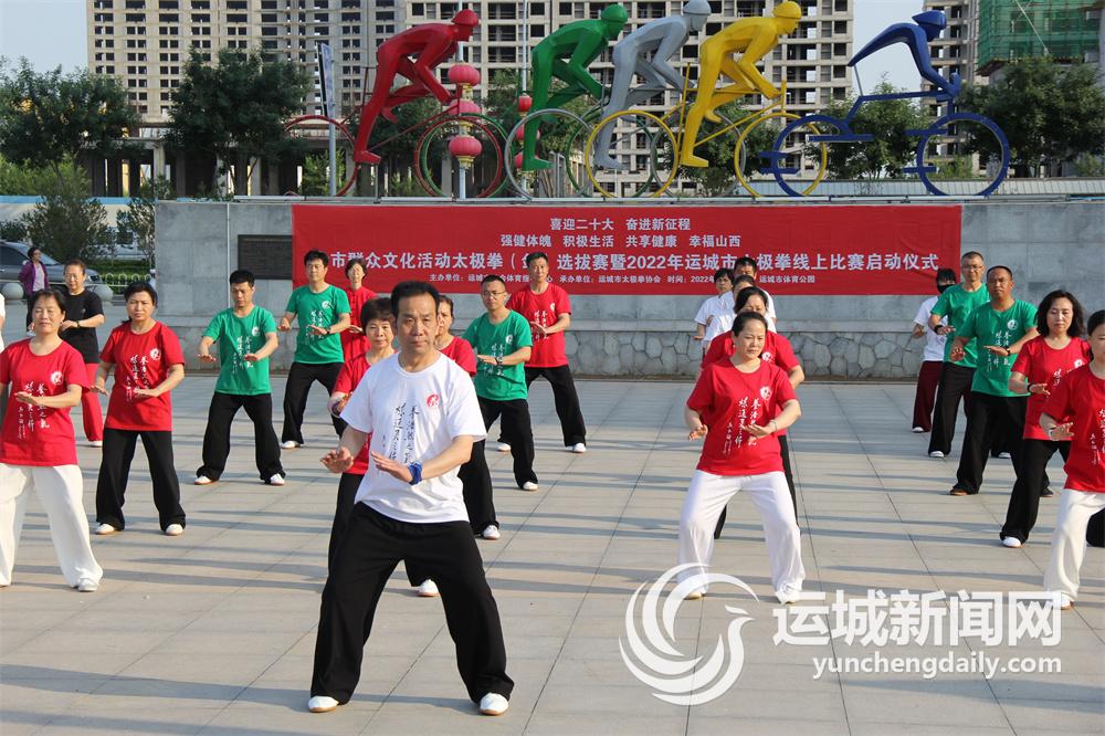 运城晚报讯(记者 杜磊)5月26日上午,由运城市社会体育指导中心主办、运城市太极拳协会承办的“喜迎二十大 奋进新征程”全市群众文化活动太极拳(剑)选拔赛暨2022年运城市太极拳线上比赛启动仪式在市体育公园举行(上图)。