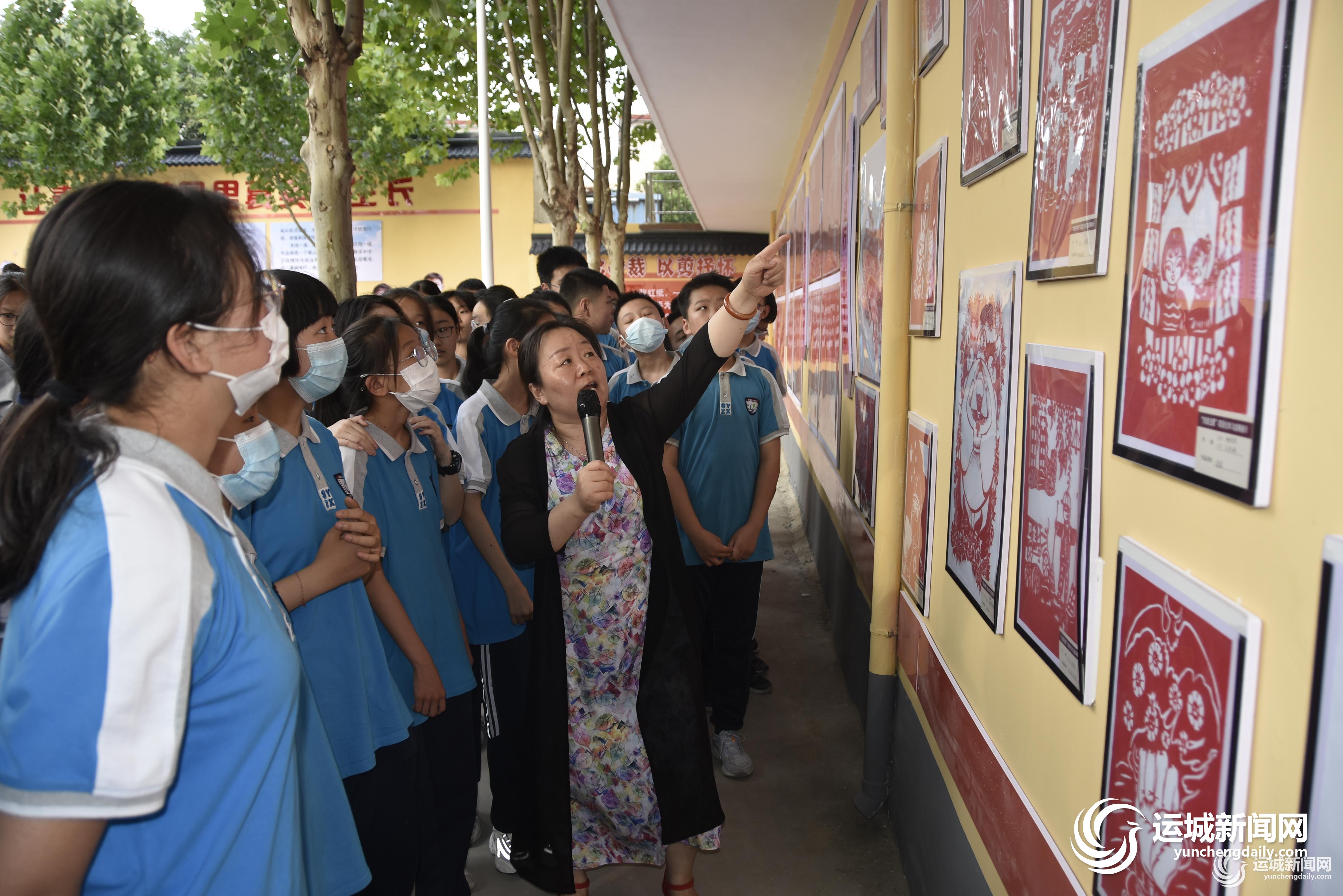 “同学们,快来看,咱们的剪纸作品都上了墙,这里还有摄影作品、书法作品……”5月24日下午活动时间,在市实验中学操场上活动的同学们发现,操场边上原先光秃秃的墙壁上,现在被布置上了他们前一段时间创作的抗疫题材的传统文化作品。据了解,这是该校开展的项目化学习的成果展示,也是师生们为学校抗疫宣传所做的项目化学习的“功课”展示,让原先陈旧没有生机的学校围墙,变成了校园里一个宣传抗疫的阵地,成了学校传统文化展示的平台。