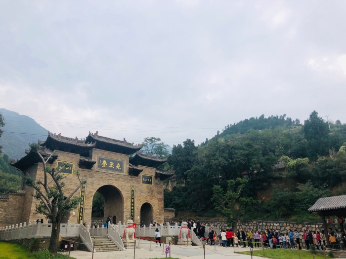 尧王台,传为尧舜禅让天下之处。因道教奉“天帝”即玉皇大帝为至上神,故尧王台第一座大庙便是玉皇大帝庙。唐代崇道教为国教,奉老子为玄元皇帝,于是在各州(郡)置玄元皇帝庙。长安和洛阳的玄元皇帝庙,称为玄元宫。其他各州(郡)的玄元皇帝庙,则称为紫极宫。东汉曹植云:“情注于皇居,心在乎紫极。”紫极,是星宿名称,借指帝王的宫殿,古有“紫极三辰正,黄图九域清”的说法。如今,尧王台的山门牌匾“紫极灵宫”石刻匾额仍保存完好。