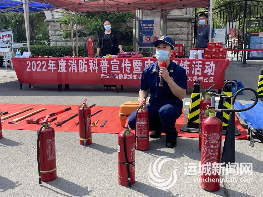 运城晚报讯(记者 寻霄)为增强市民的消防安全意识,5月26日,运城市消防救援支队宣传人员走进盐湖区恒大绿洲社区,开展消防安全讲座,并指导社区进行消防安全演练。