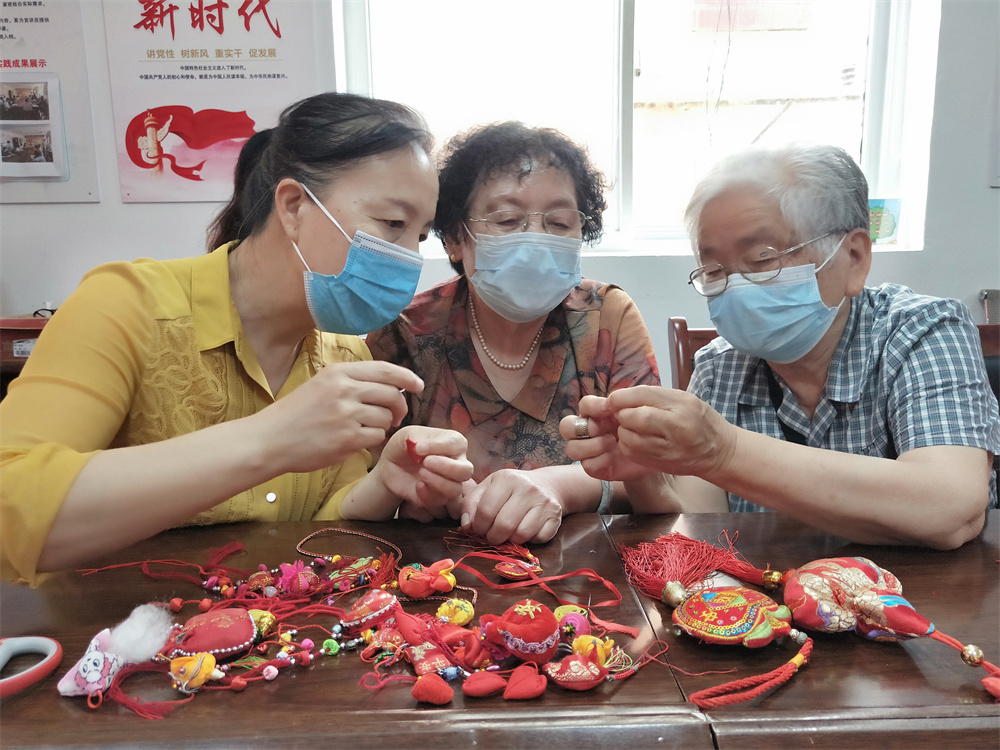 活动现场,居民鱼顺恋传授香囊制作方法,大家在穿针引线中缝制出福袋、粽子、桃心、绣球等不同形状的香囊,在互帮互助中拉近关系,在悠悠的艾香中感受传统节日的独特魅力。