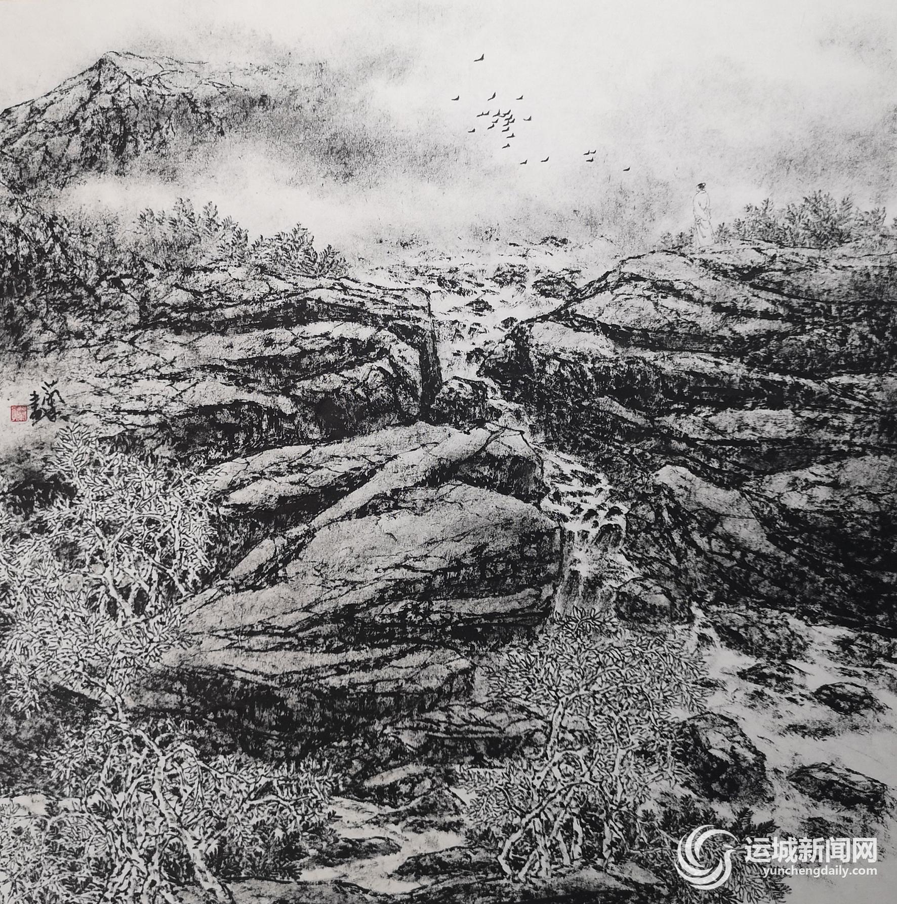 他的“新焦墨山水画”在中国画单线平涂的传统绘画技法中,融入了西方绘画元素,将山川、峻石、云水、草木展现得具有层次感和立体感,进一步拓展了焦墨山水画法的艺术表现力和审美范畴,独树一帜。其作品以敦厚沉雄、奇宕恣肆为主要特色,同时又蕴含着一种清逸、雅淡、隽秀、空灵的境界,行笔流畅、富于变化,洋溢着独特的笔墨韵致。