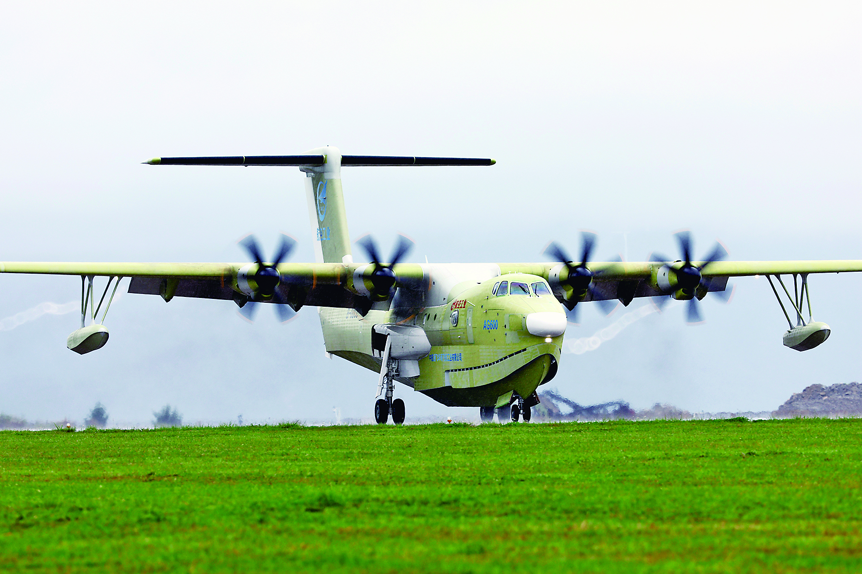 这是5月31日拍摄的“鲲龙”AG600全状态新构型灭火机。 当日,我国自主研制的大型灭火/水上救援水陆两栖飞机“鲲龙”AG600全状态新构型灭火机在广东珠海首飞成功。 新华社发