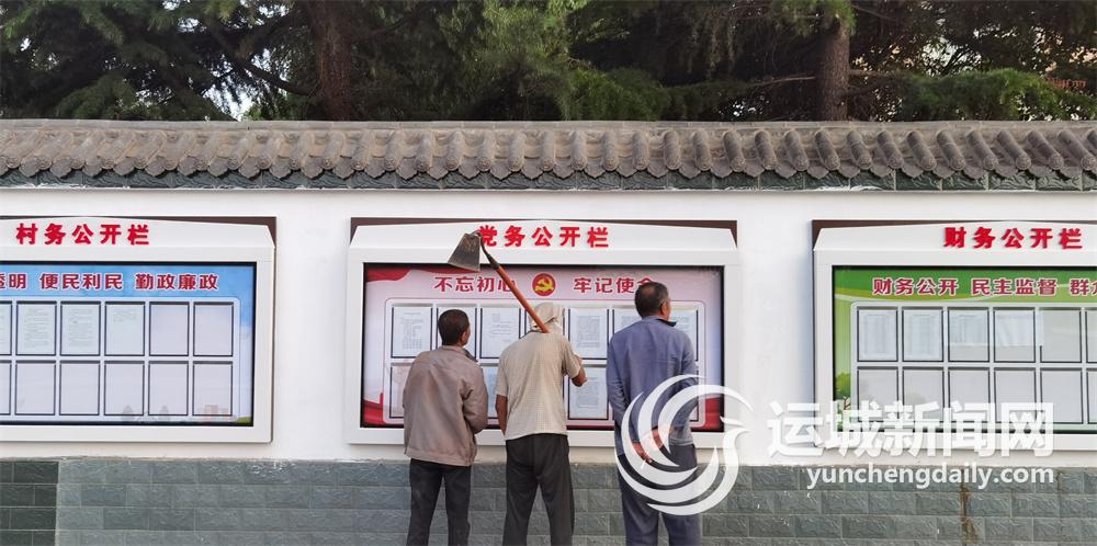 6月1日,芮城县陌南镇东窑村几名下地回来的村民在村委会刚刚设立的农村“三务”公开栏查看各种公开账单。