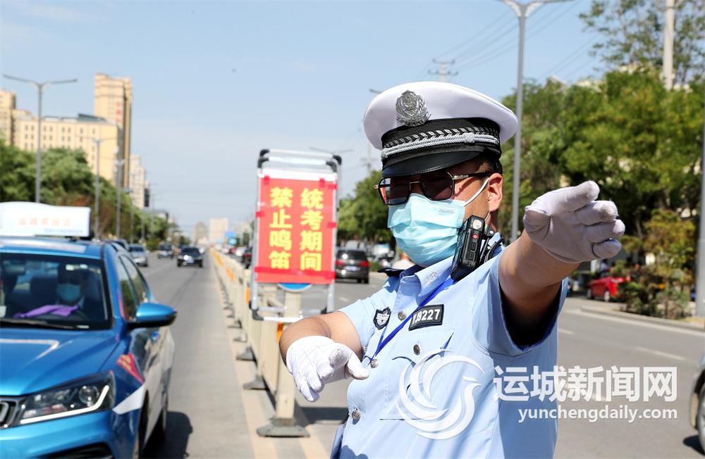 6月7日,全国高考拉开大幕。市公安局盐湖分局交警大队一线中队民警在市区学院附中、运城中学、河东一中等考点设置警戒区域、摆放禁鸣指示牌,为考生提供良好的道路交通环境。