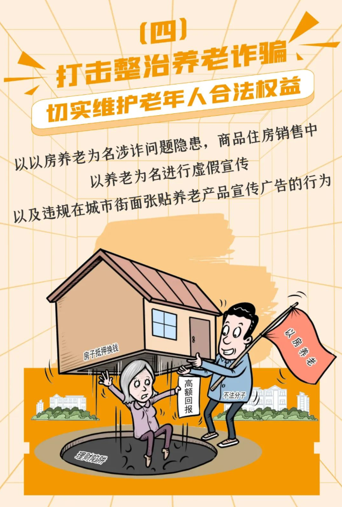 警惕!以宣称“以房养老”为名非法集资。一些企业以非法占有为目的,打着“以房养老”的旗号,通过召开推介会、社区宣传等方式,诱使老年人签订“借贷”或者变相“借贷”“抵押”“担保”等相关协议,抵押房屋以获得出借资金,再将资金购买其“理财产品”并承诺给付高额利息等进行非法集资。