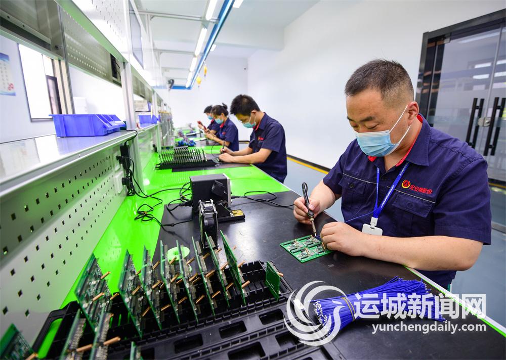 6月8日,在山西宏安翔科技股份有限公司生产车间,技术人员对矿用本安型位移传感器零部件进行焊接。
