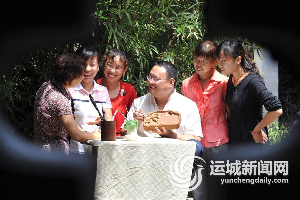 国家级非遗传承人蔺涛在向徒弟教授绛州澄泥砚制作工艺。近年来,蔺涛及其团队创新了国家级非物质文化遗产在新时期保护、传承与发展的新模式。