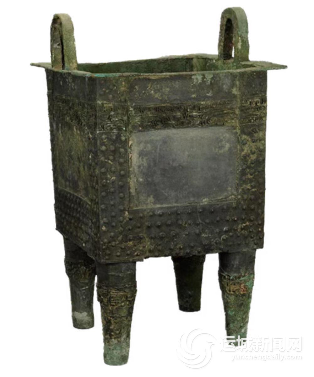 商代兽面乳钉纹方鼎,1990年出土于平陆县坡底乡前庄遗址,现藏于山西博物院。