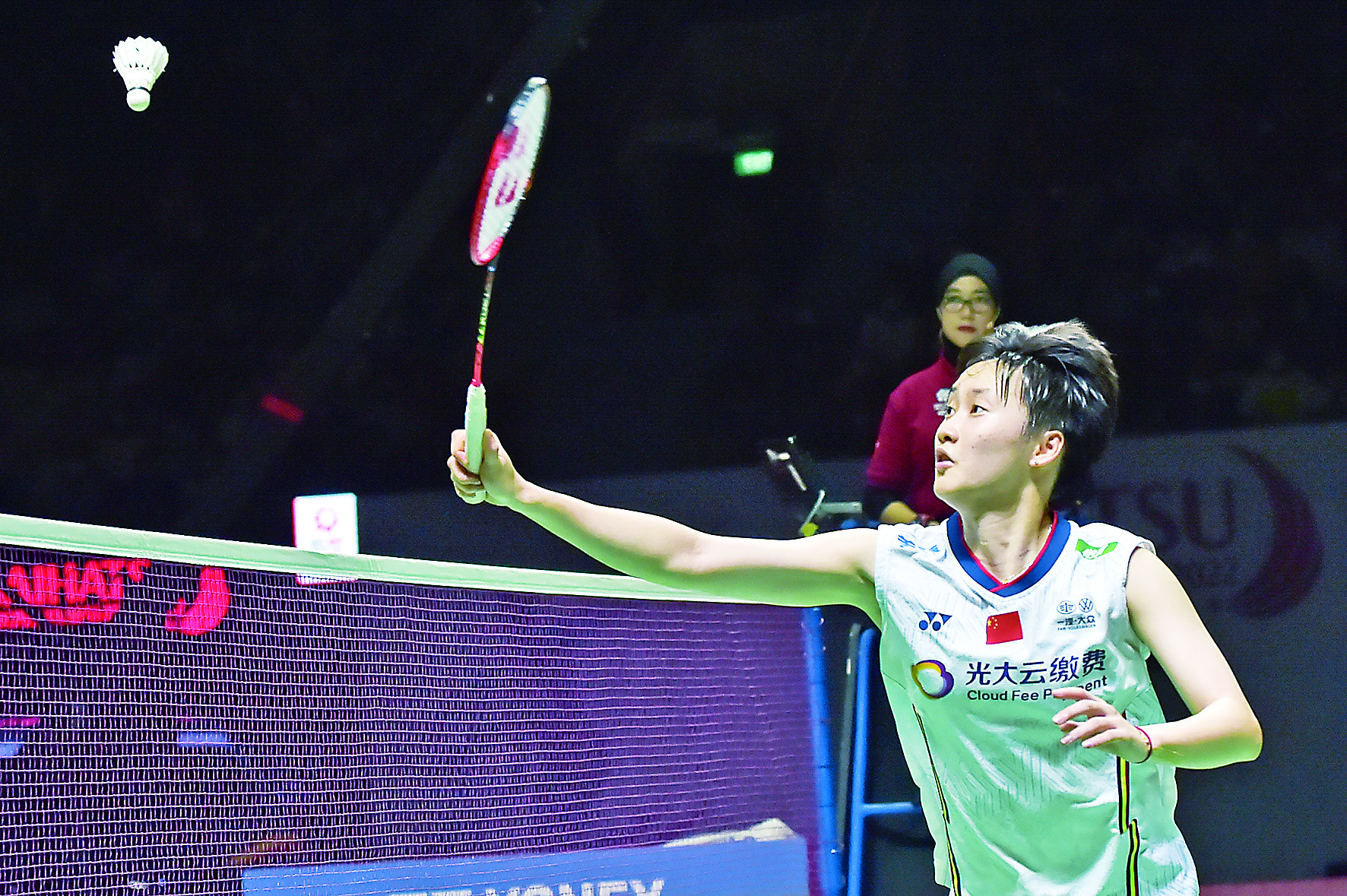 ▲6月12日,陈雨菲在比赛中回球。 当日,在印度尼西亚首都雅加达举行的印尼羽毛球大师赛女单决赛中,中国选手陈雨菲以2比1战胜泰国选手因达农,夺得冠军。 新华社发(维里 摄)
