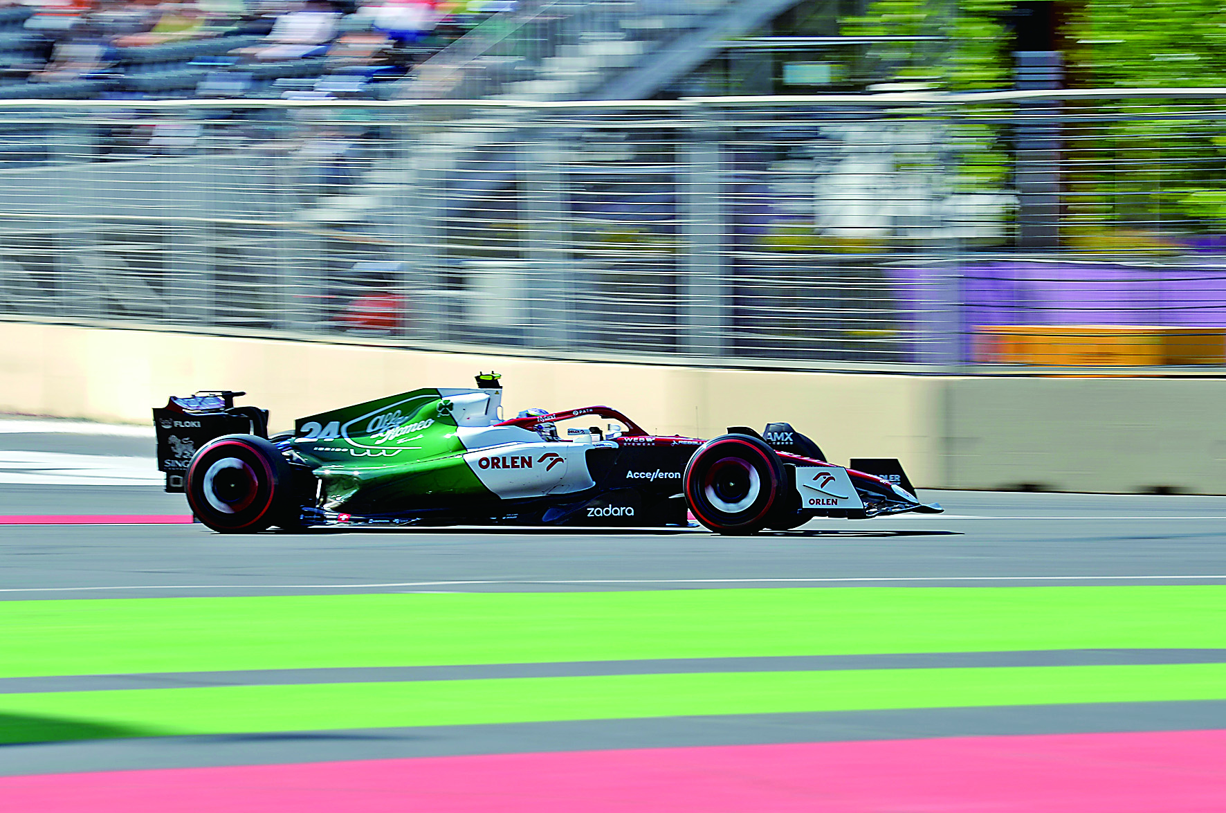 ▲6月11日,阿尔法罗密欧车队中国车手周冠宇驾车参加排位赛。最终他以1分43秒790的成绩位列第14名。当日,2022赛季世界一级方程式赛车锦标赛(F1)阿塞拜疆站排位赛在阿塞拜疆巴库赛道举行。