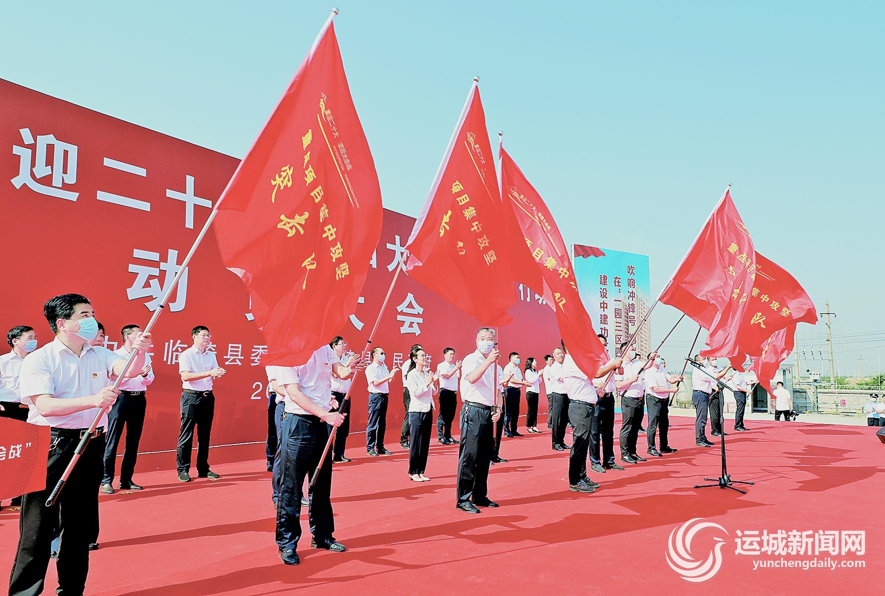 动员大会上,临猗县委、县政府向10个重点项目集中攻坚突击队授旗,并要求各“参战”单位立下军令状、挂出作战图,以昂扬斗志和扎实行动推动项目建设。