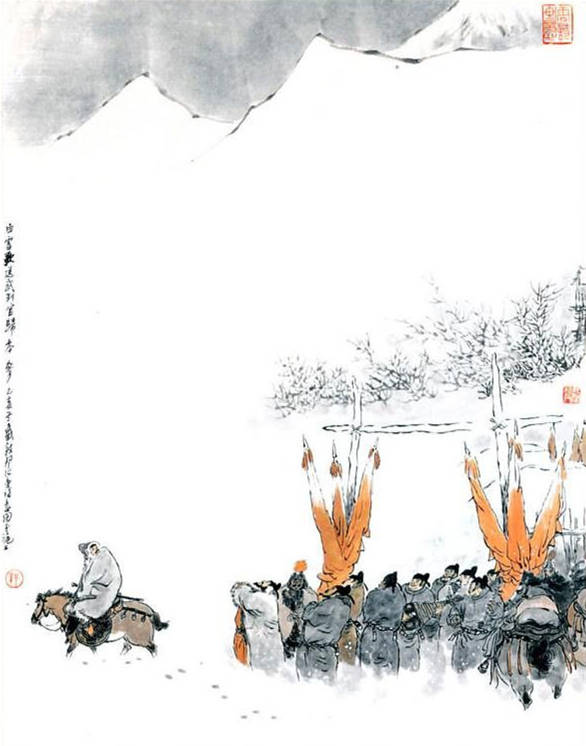 ▲岑参《白雪歌送武判官归京》诗意画 戴敦邦作