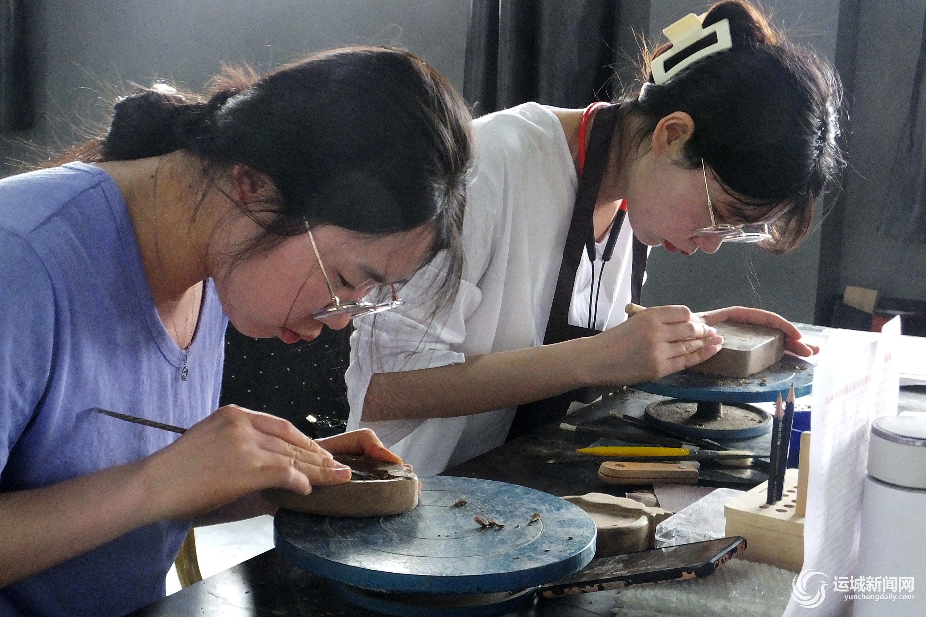 6月11日是第十七个文化和自然遗产日,活动主题为“文物保护:时代共进 人民共享”。当天,在新绛县古城绛州省校合作重点企业山西省新绛县绛州澄泥砚研制所国家级非遗绛州澄泥砚文化产业园研学大楼,来自太原师范学院美术系夏季研学班的研究生在国家级非遗绛州澄泥砚省级代表性传承人、大国工匠、全国劳模蔺涛大师和制砚工艺师们手把手传承下,精心研习国家级非遗绛州澄泥砚制作技艺。