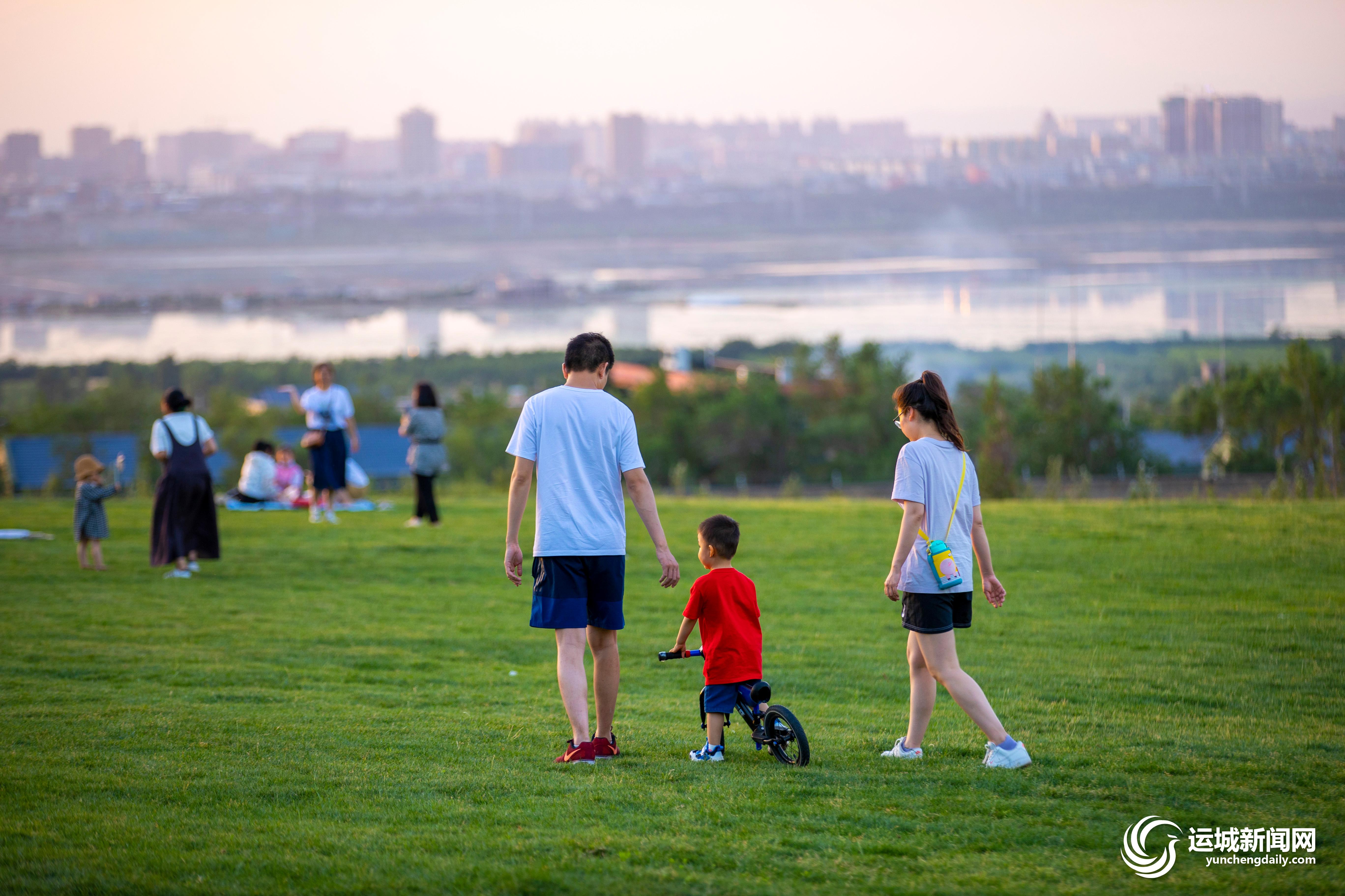 连日来,面对高温天气,我市越来越多的市民选择傍晚时分走出家门,来到户外亲近自然、消暑纳凉、休闲娱乐,享受夏日里的一丝惬意。图为市民在运城南山新境市民广场消暑纳凉、乐享自然。 本报记者 闫 鑫 摄