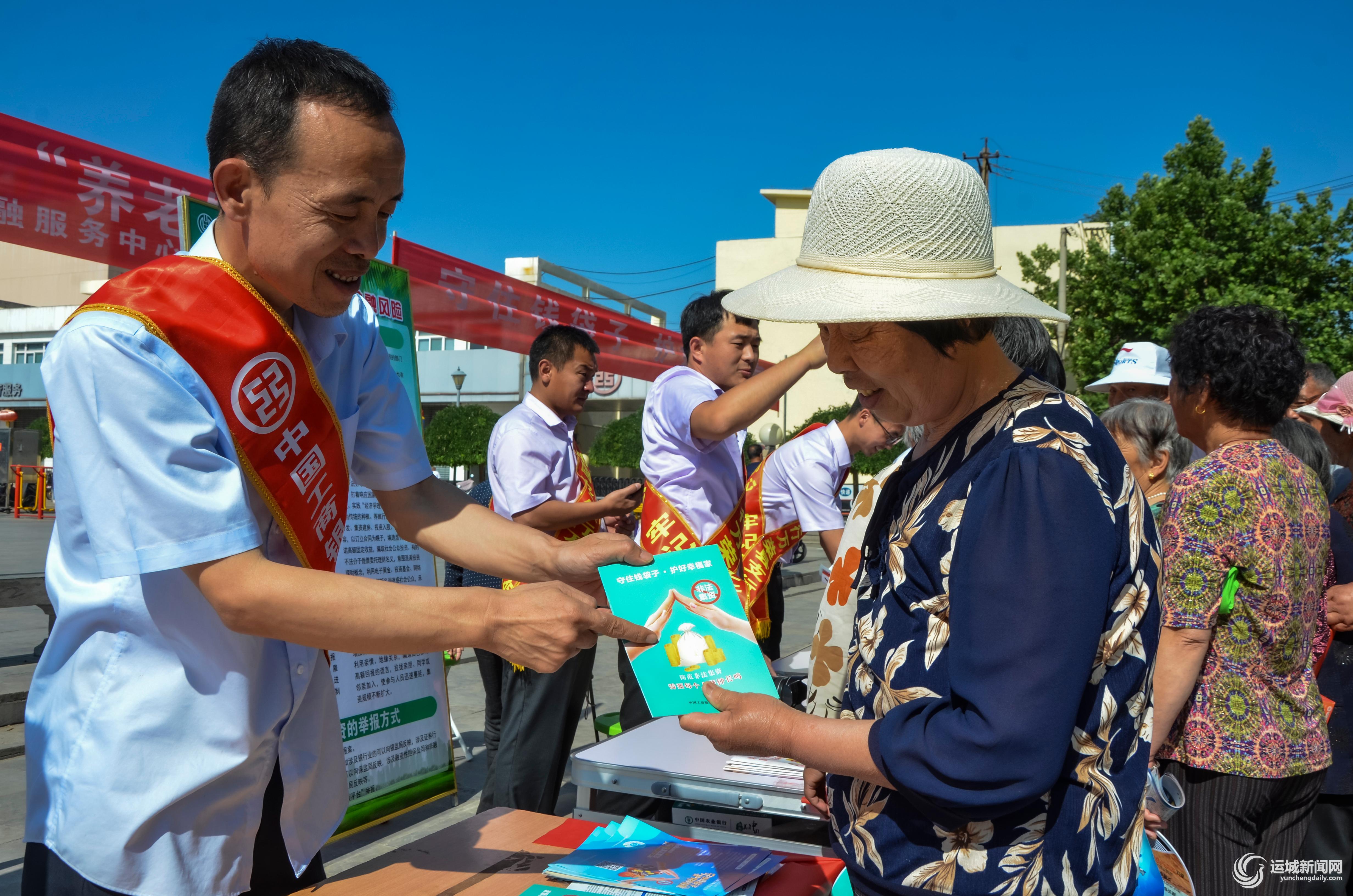 为进一步增强群众防范意识,依法保护自身权益,万荣县金融服务中心、中国工商银行万荣支行等多家单位共同举行“守住钱袋子,护好幸福家”防范非法集资集中宣传活动,为群众普及防范非法集资知识,发放宣传手册。特约摄影 解建国 摄