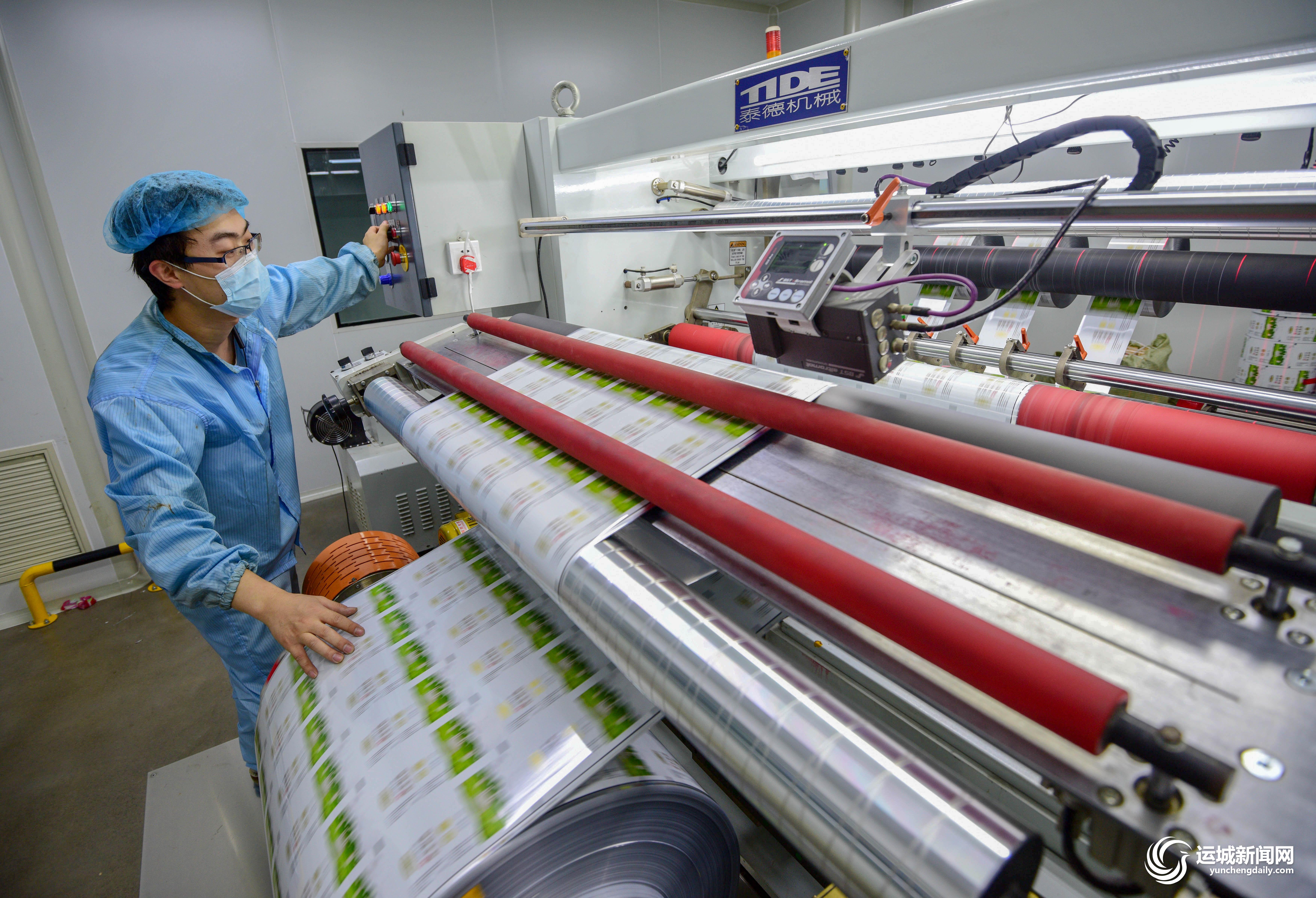 6月16日,位于盐湖高新技术产业开发区的国森彩印有限公司生产车间,工人在加紧生产药用复合膜产品。