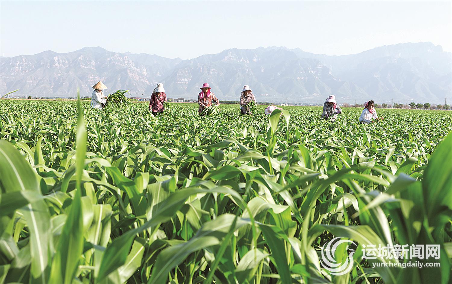 6月15日,永济市虞乡农场职工在高粱地里进行田间管理。