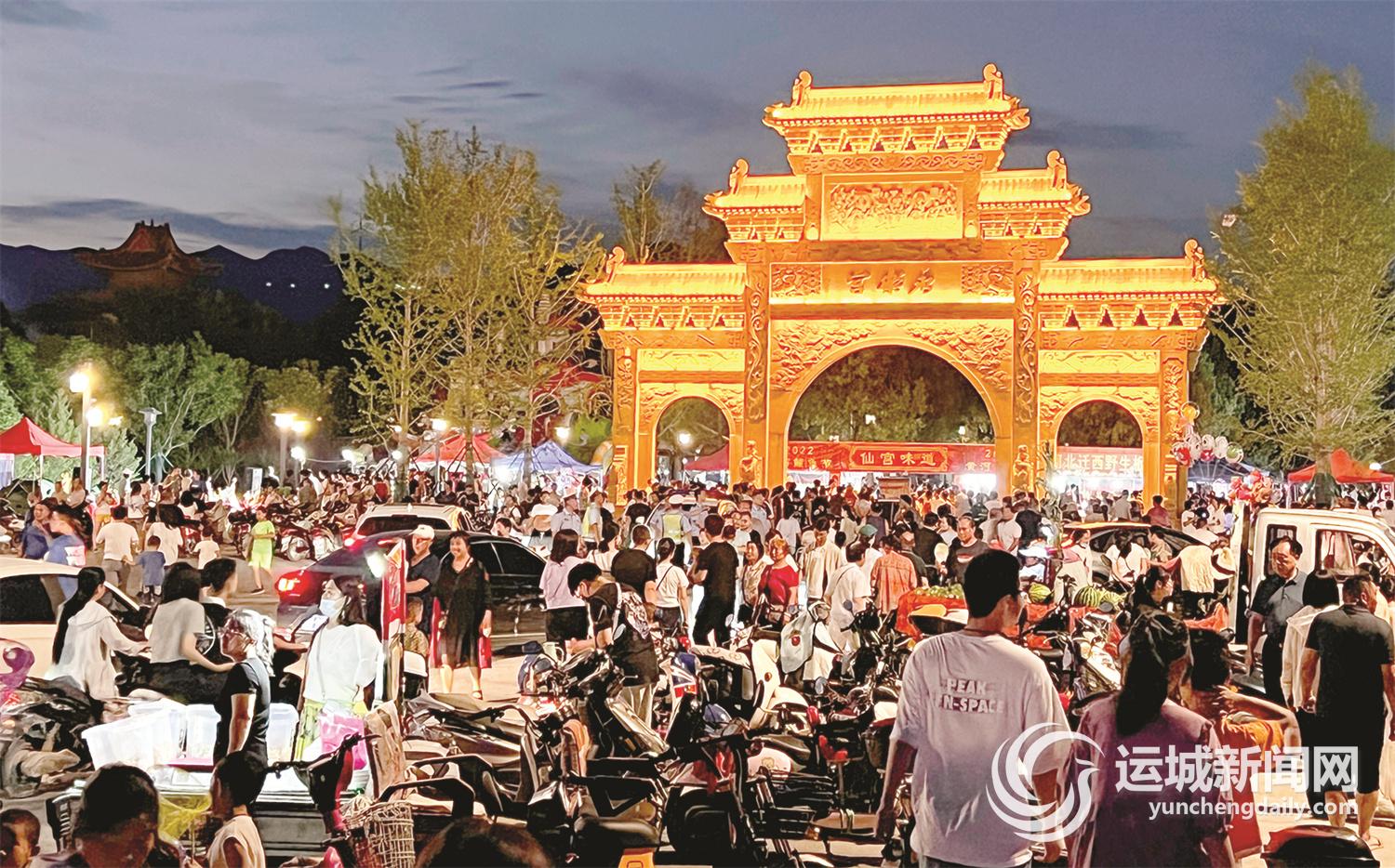 6月20日晚,芮城县永乐宫文化广场前灯火通明,人头攒动,作为“2022芮城黄河鲤鱼节”活动之一的特色美食展销会在此举行。