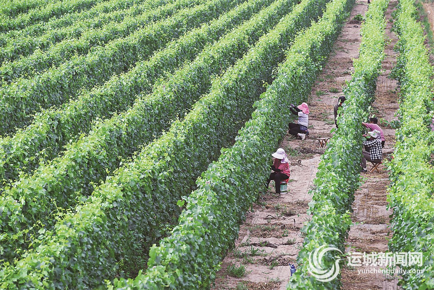 6月21日,稷山县稷峰镇苑曲村村民在田间管理葡萄。