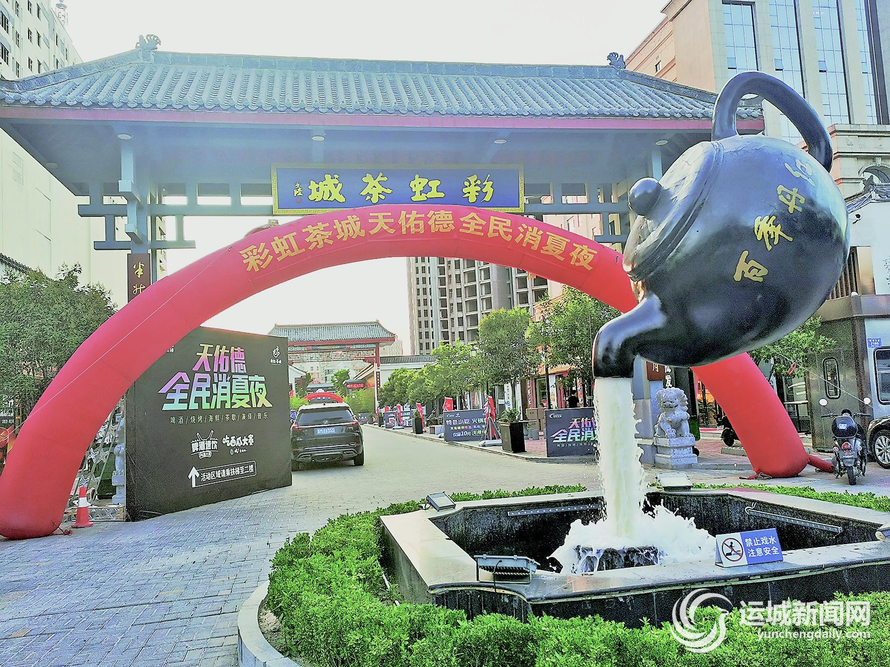 18日晚,位于市区机场大道双龙桥东的彩虹茶城灯火通明、人声鼎沸。茶城入口处,一个巨大的紫砂壶悬在空中,不停地往外倒水。一些市民被这一景观吸引,纷纷合影留念。