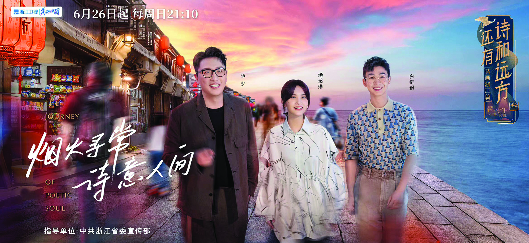浙江卫视文化旅行综艺《还有诗和远方·诗画浙江篇》第三季,定于本月26日开播。华少、杨丞琳、白举纲作为常驻嘉宾加盟节目,在旅途中探寻景色与文化的双重意义。