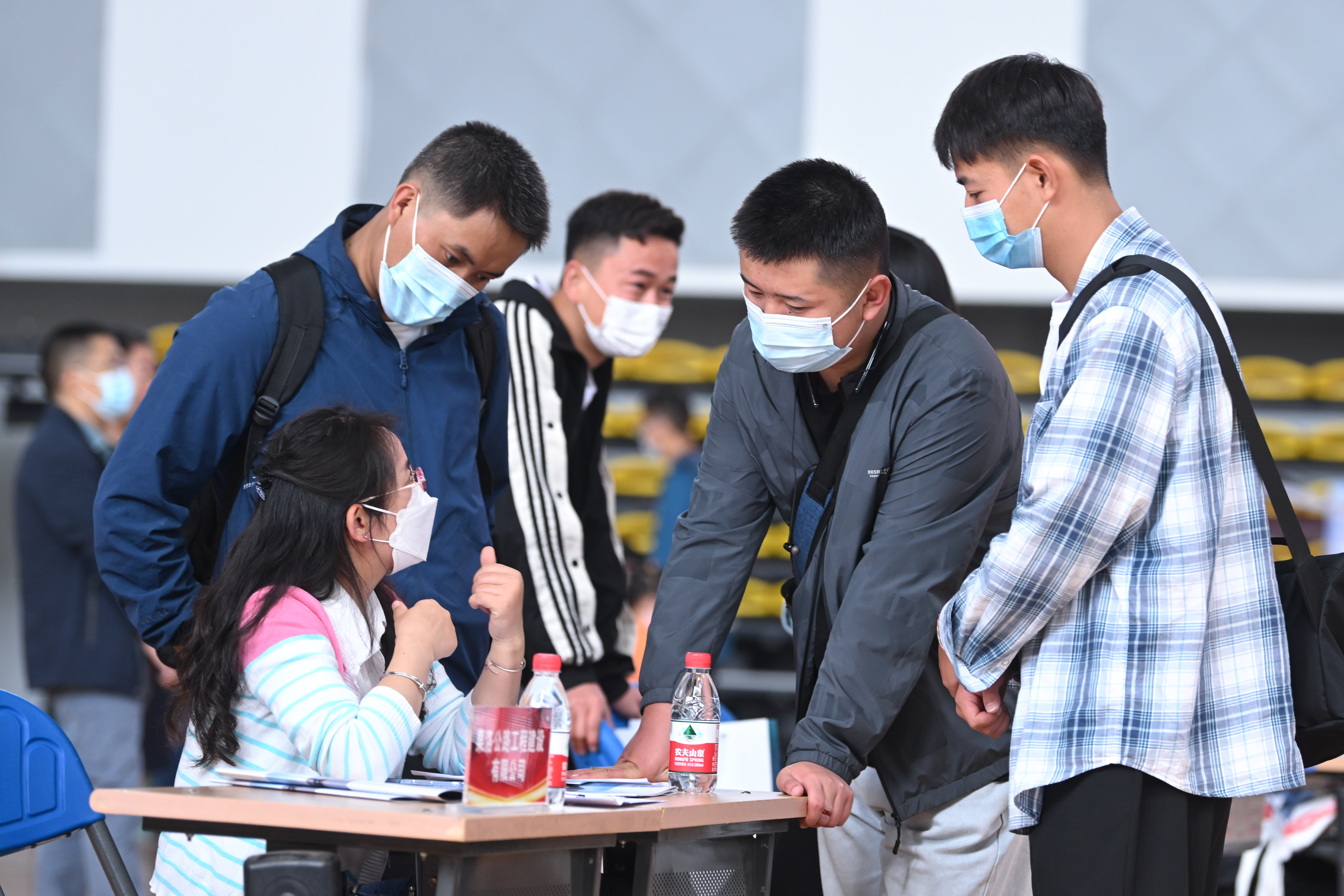 当日,青海交通职业技术学院举行2023届学生岗位实习暨2022届高校毕业生校园招聘会,共有132家用人单位现场提供1616个就业岗位,吸引求职者前来咨询应聘。 新华社记者张 龙 摄