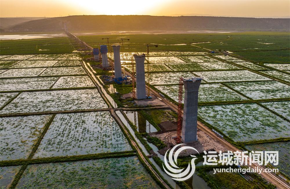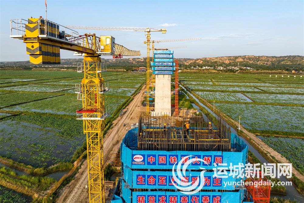 6月27日,中国铁建大桥局施工人员在临猗黄河大桥工地加紧施工。