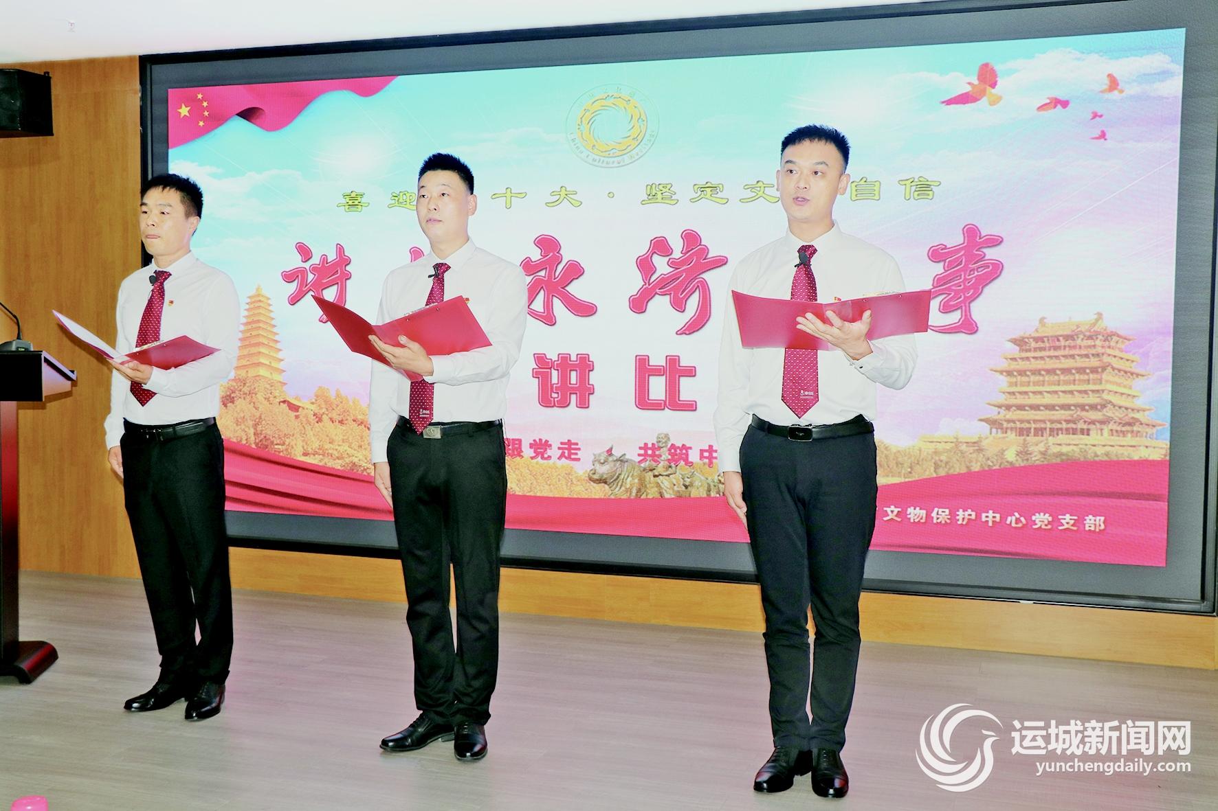 运城晚报讯 6月29日,永济市文物保护中心举办“喜迎二十大·坚定文化自信、讲好永济故事”主题演讲赛,来自该市文博系统35岁以下的27名选手登台演讲,全体党员干部职工参加活动。
